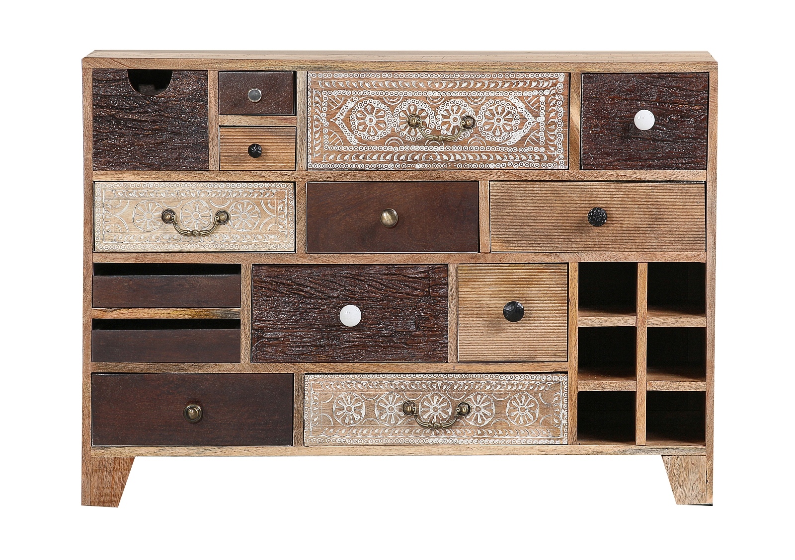 Façades : acacia massif (Inde), acacia massif avec gravures, MDF avec résine aspect bois vieilli