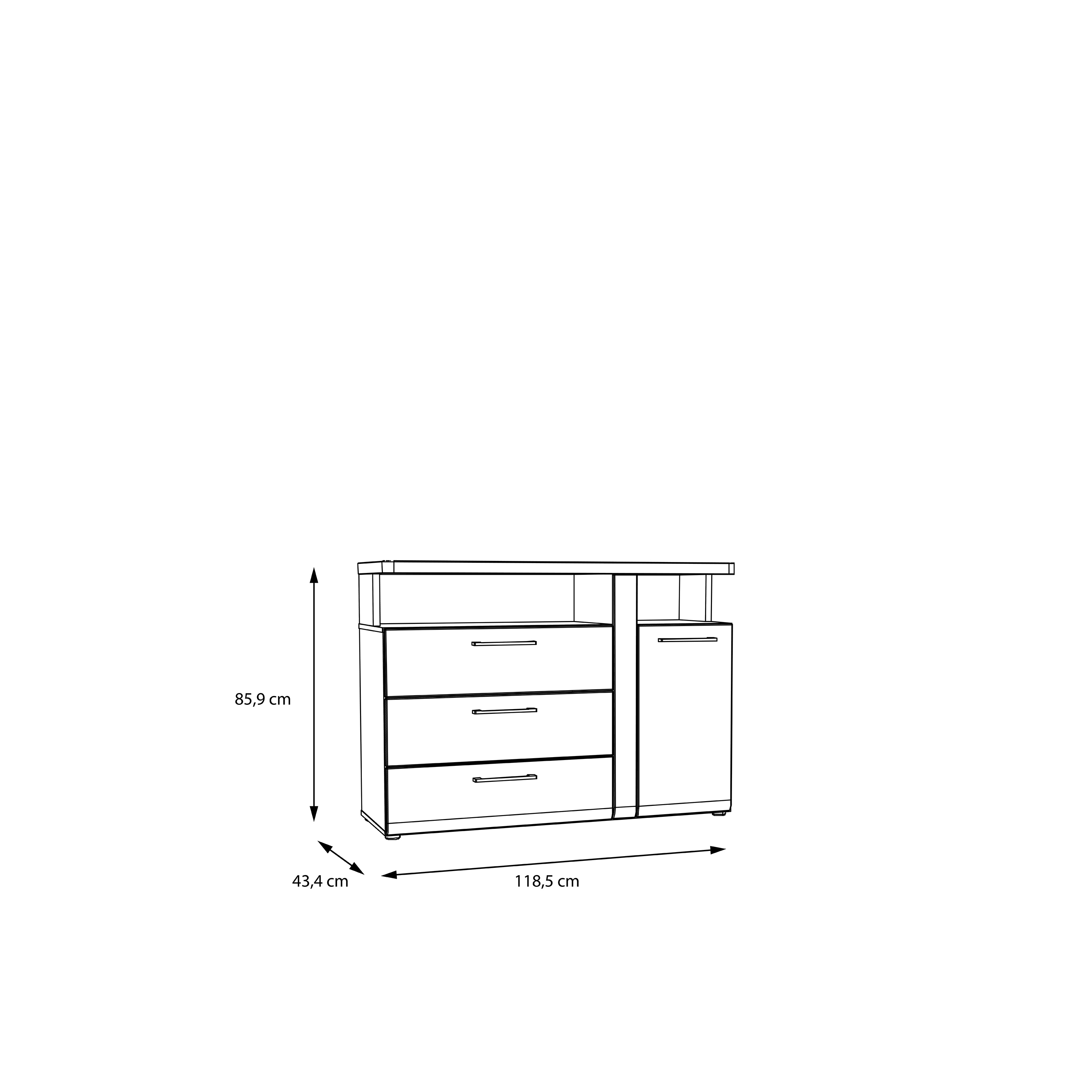 | Ausstattung Kommoden Phono Büro Regal: | Casiers ouverts, Portes, Tiroirs, incl. éclairage | ||