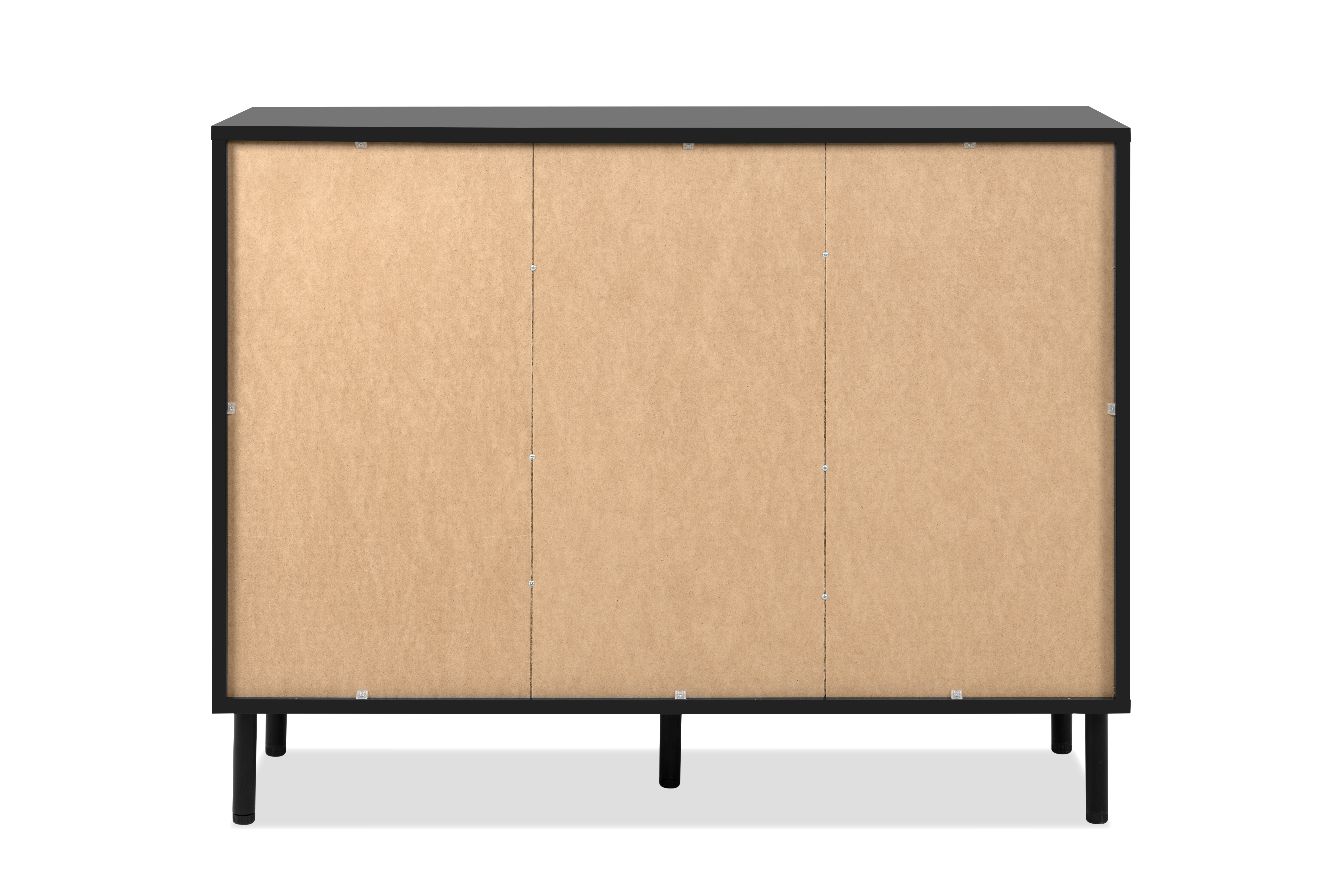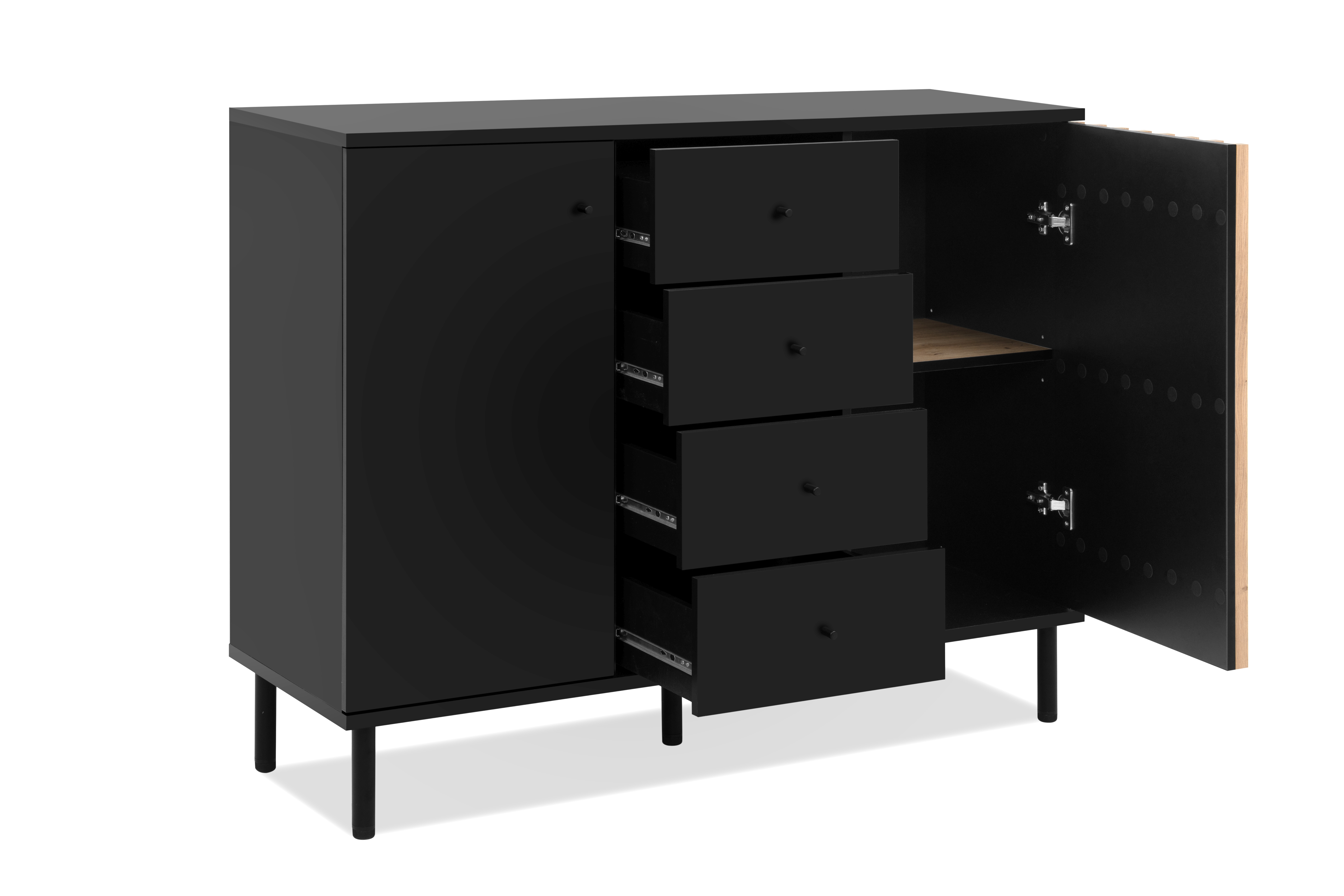 Façade : ton noir (avec traitement anti-traces de doigts) et lamelles décor chêne Artisan (aspect 3D)