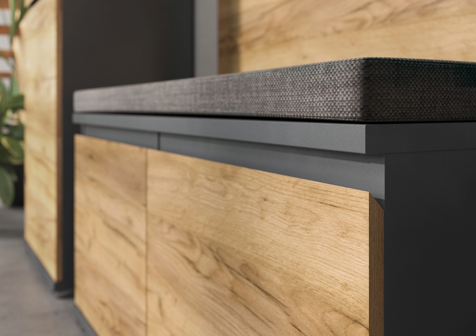 Façade : décor chêne Navarra et contrastes ton anthracite