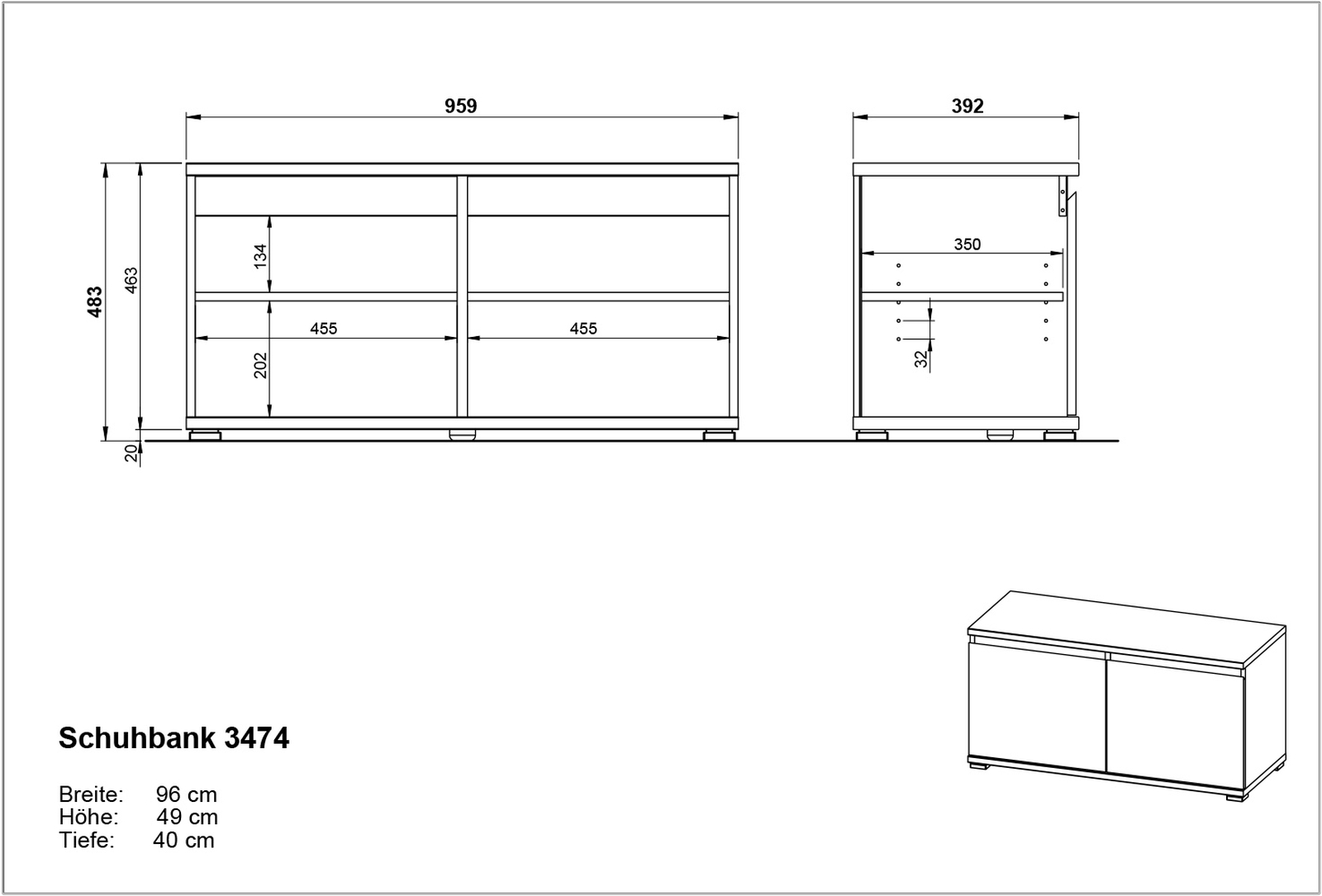 | Banc à chaussures | 96 | 52 | 40 |