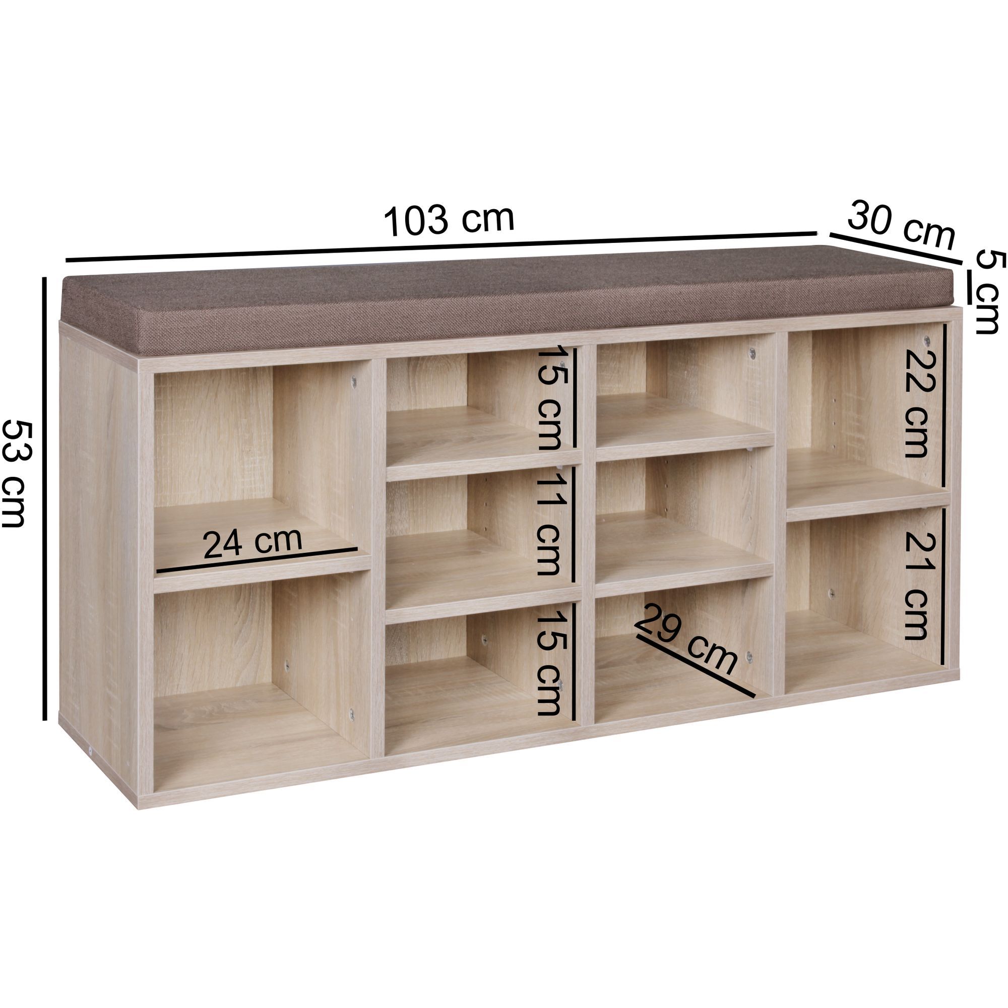- CARACTÉRISTIQUES ✔ Espace de rangement XXL grâce au nombreux casiers // Assise confortable avec coussin rembourré // Casiers pouvant s'utiliser de façon individuelle