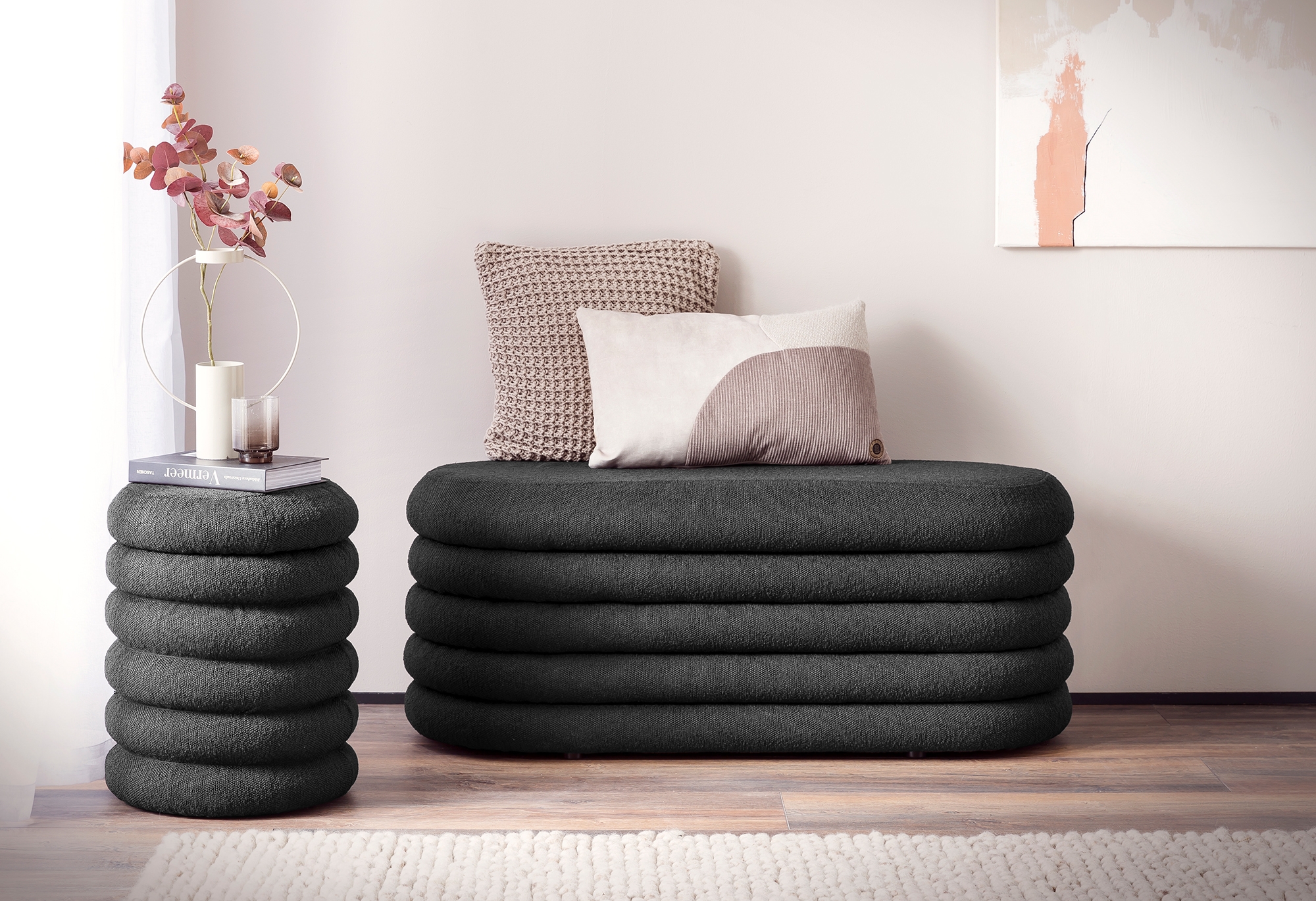 Un rangement astucieux dans un design ultra tendance ! Ce banc pouf en tissu bouclette moderne n’est pas seulement agréable pour les yeux. L’élément supérieur du banc pouf est amovible de sorte que l’intérieur se transforme en un rangement ultra pratique. Avec ce banc, vous pourrez ainsi créer un siège supplémentaire tout en mettant de l’ordre dans le salon ou la chambre à coucher. C’est avant tout comme bout de lit que le banc pouf tissu bouclette au design années 70 sera du plus bel effet. La livraison est très facile : l’article est livré déjà monté. Il suffit de le déballer, de le placer dans la pièce et d’en profiter.