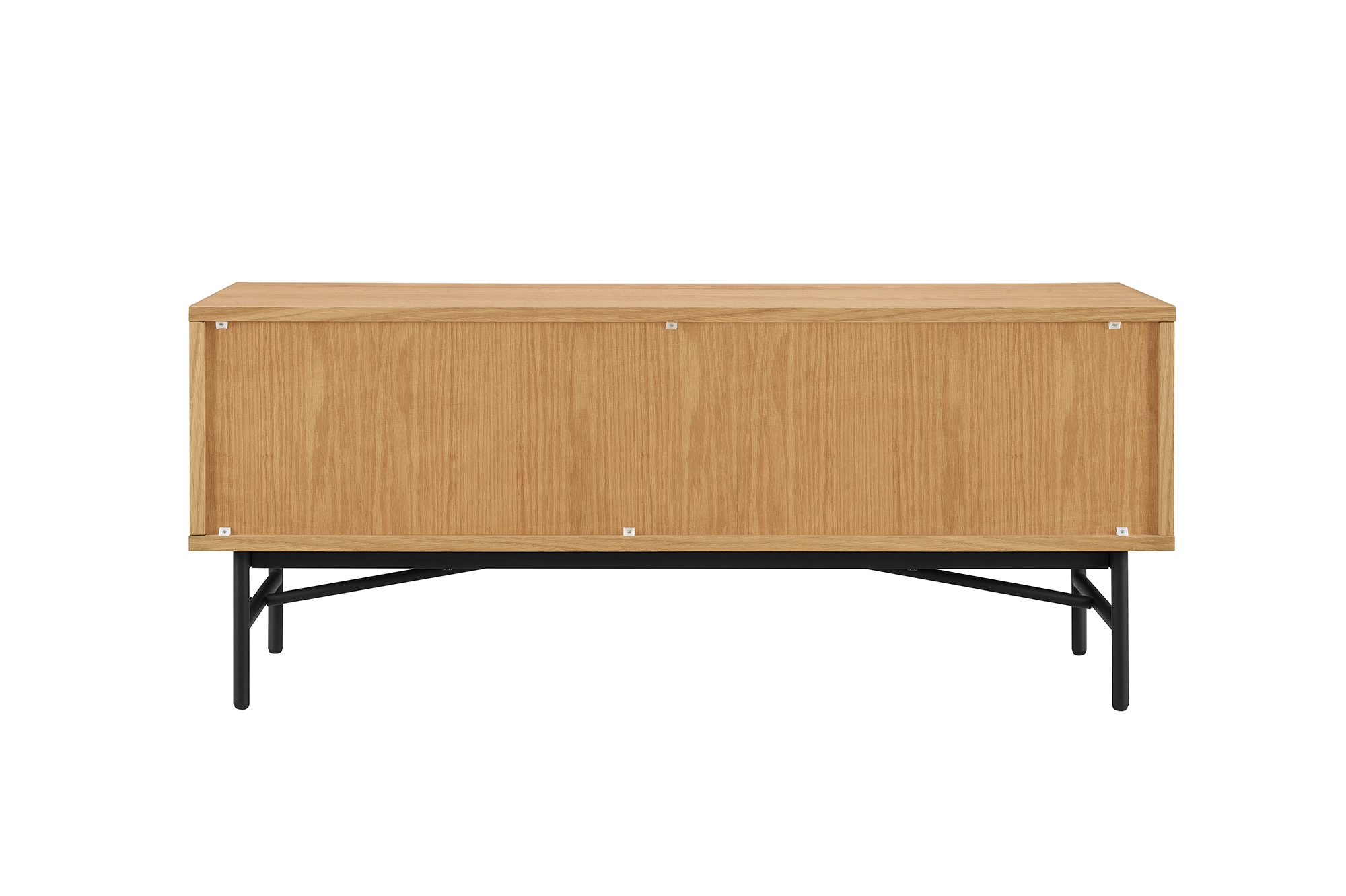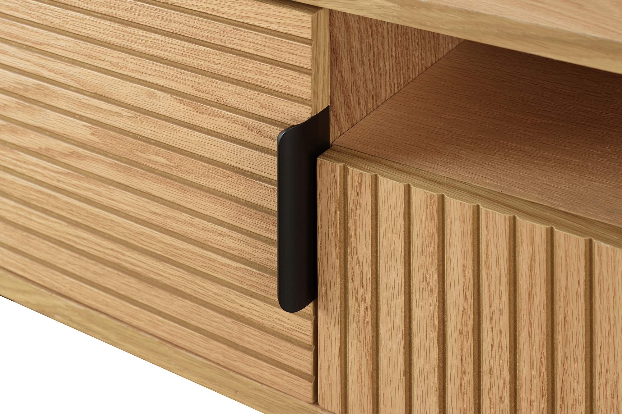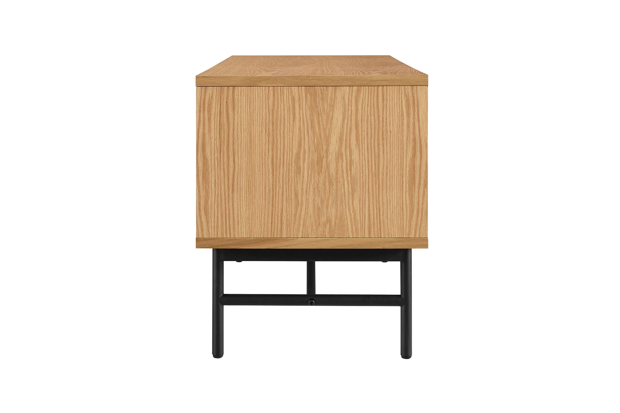 Le placage chêne clair et les pieds hauts laqués ton noir créent un contraste moderne et font entrer le style scandinave ultra tendance dans votre intérieur. Un vernis polyuréthane résistant aux rayures est appliqué sur le caisson du meuble : ceci le rend particulièrement résistant et robuste pour pouvoir en profiter longtemps. La structure avec des pieds fins confère au banc TV un aspect léger et aérien et un look tendance digne d’un loft. Le placage en chêne apporte un charme supplémentaire à l’ensemble. Le casier ouvert de ce banc TV permet de positionner l’équipement Hi-Fi tandis que la porte et le tiroir offrent un espace de rangement à l'abri des regards.