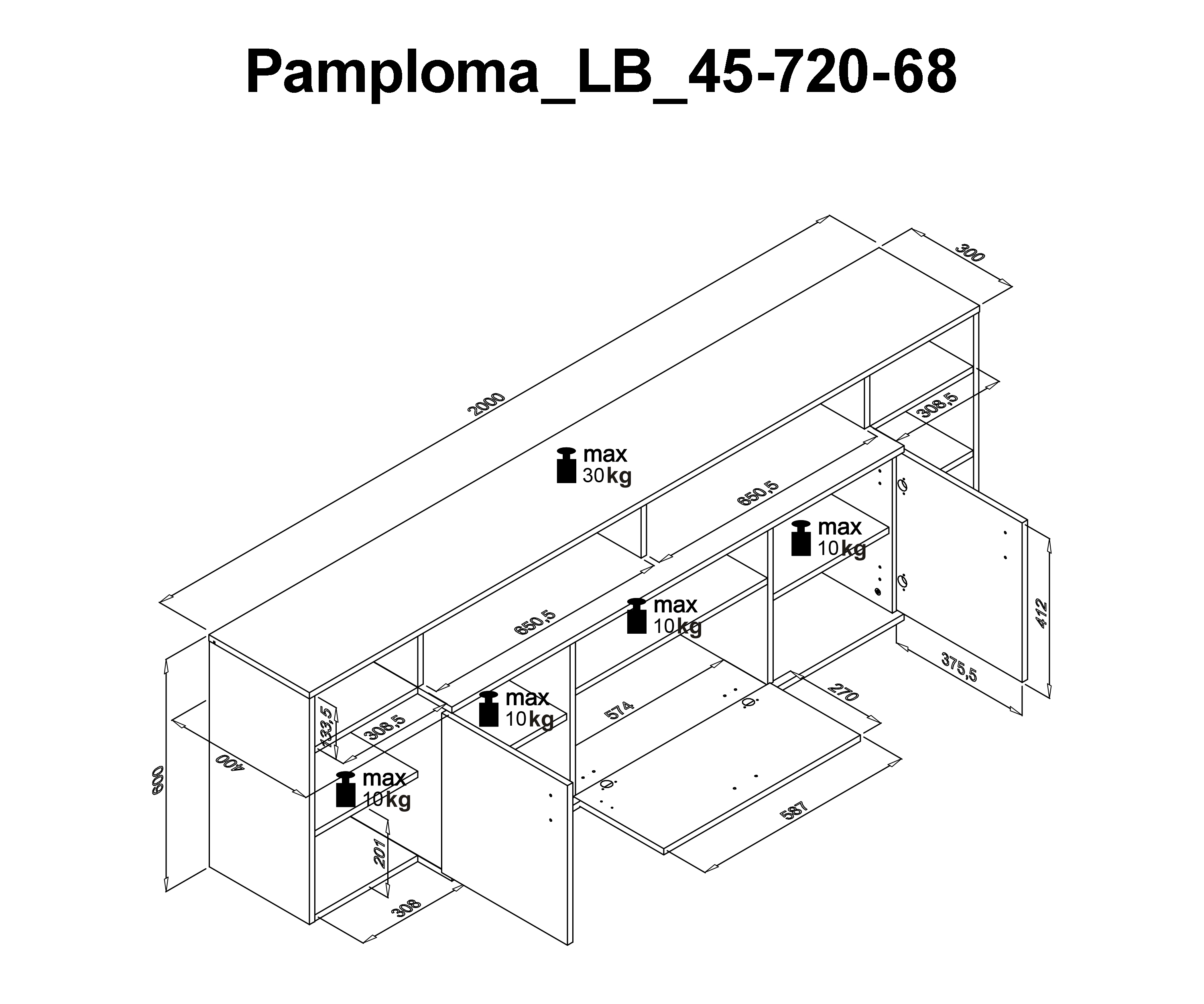 | Ausstattung Kommoden Phono Büro Regal: | Abattant(s), Casiers ouverts, Portes | ||