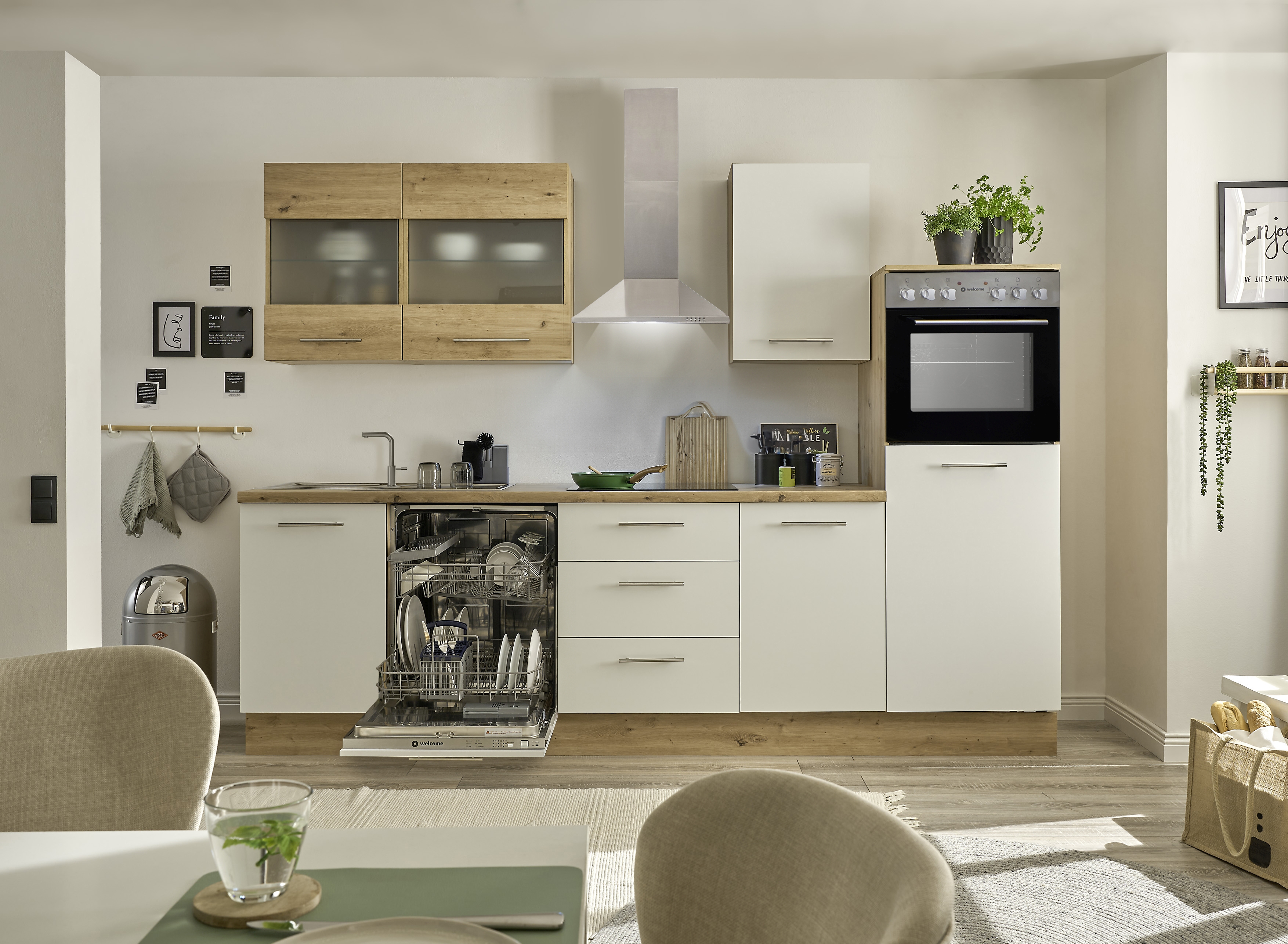 Caisson : ton blanc et décor chêne Artisan, panneau de particules surfacé mélaminé (PPSM)