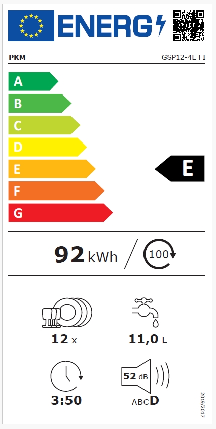 Consommation énergétique annuelle : 92,00 kWh/an