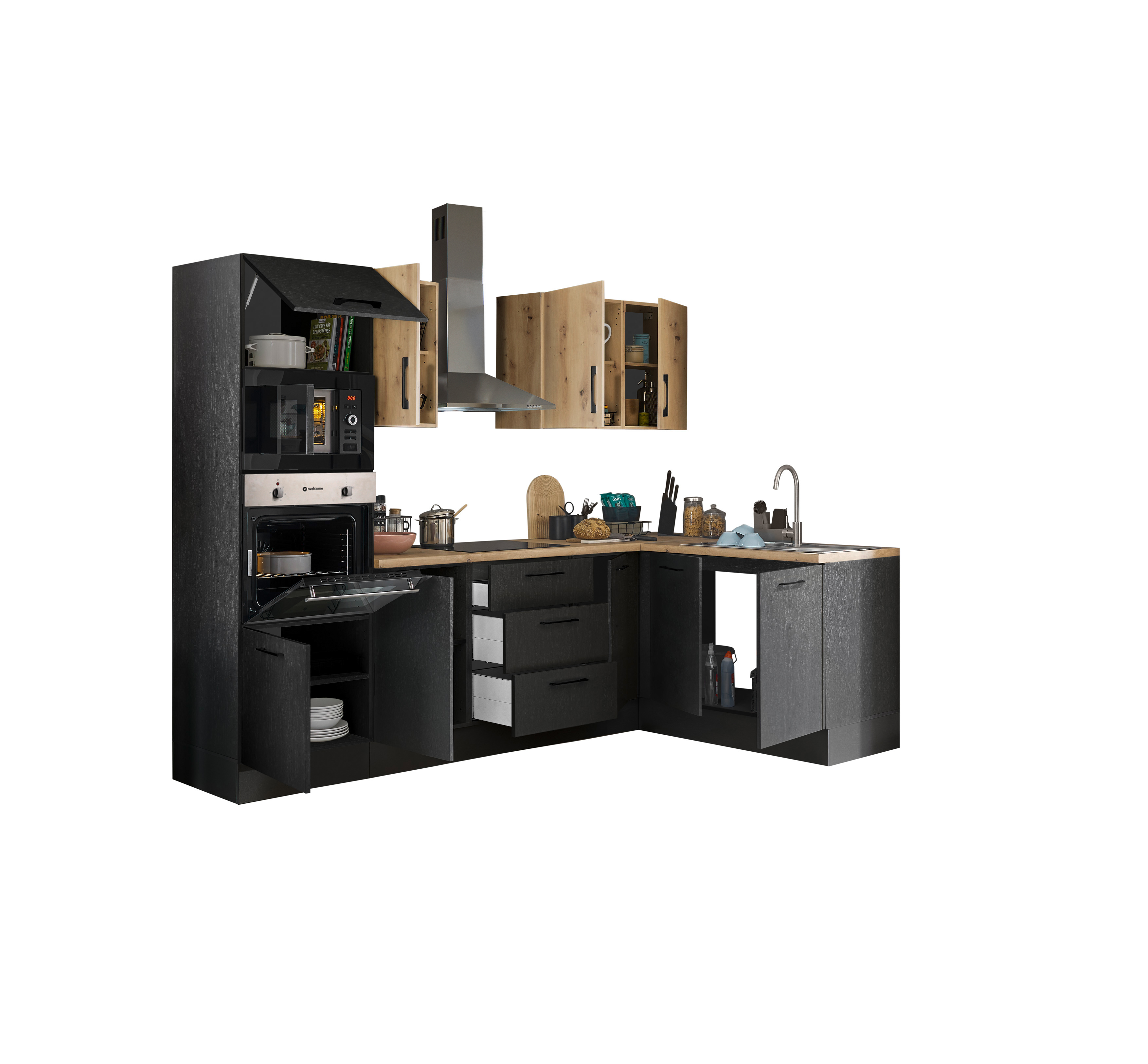 Bloc cuisine avec électroménager CORNWALL (cuisine d'angle-four-micro-ondes) III