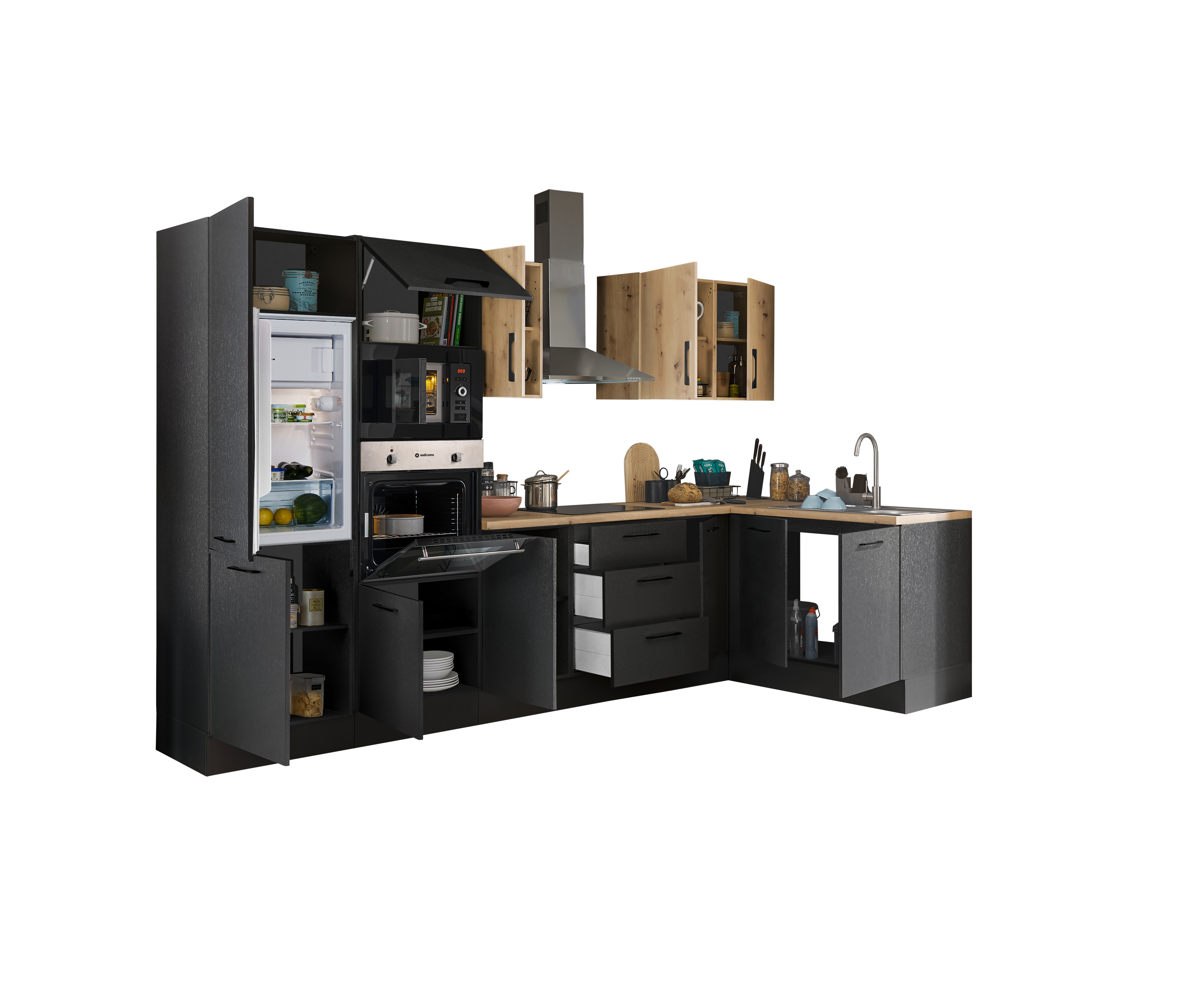 Bloc cuisine avec électroménager CORNWALL (cuisine d'angle-four-réfrigérateur-micro-ondes) III