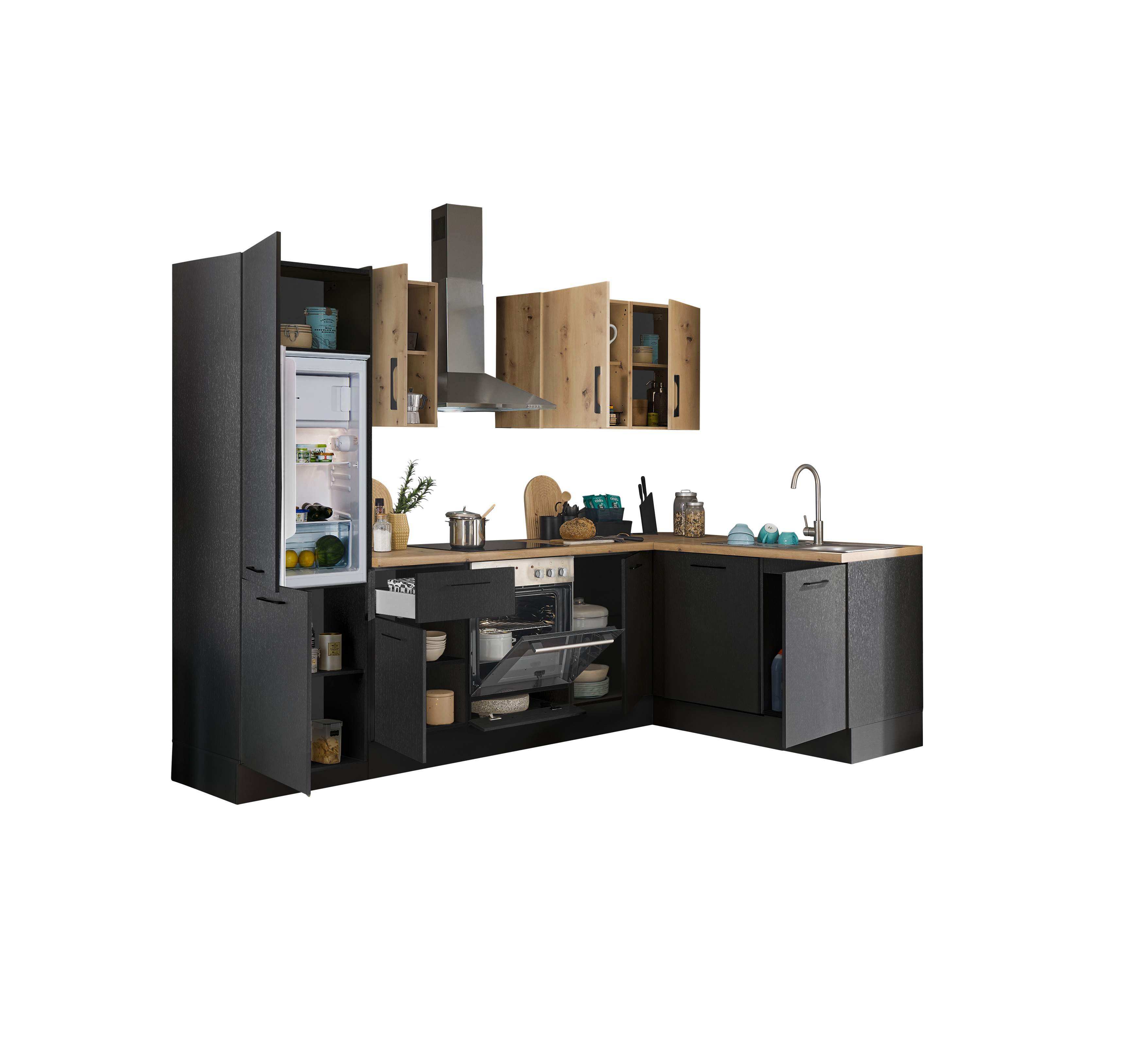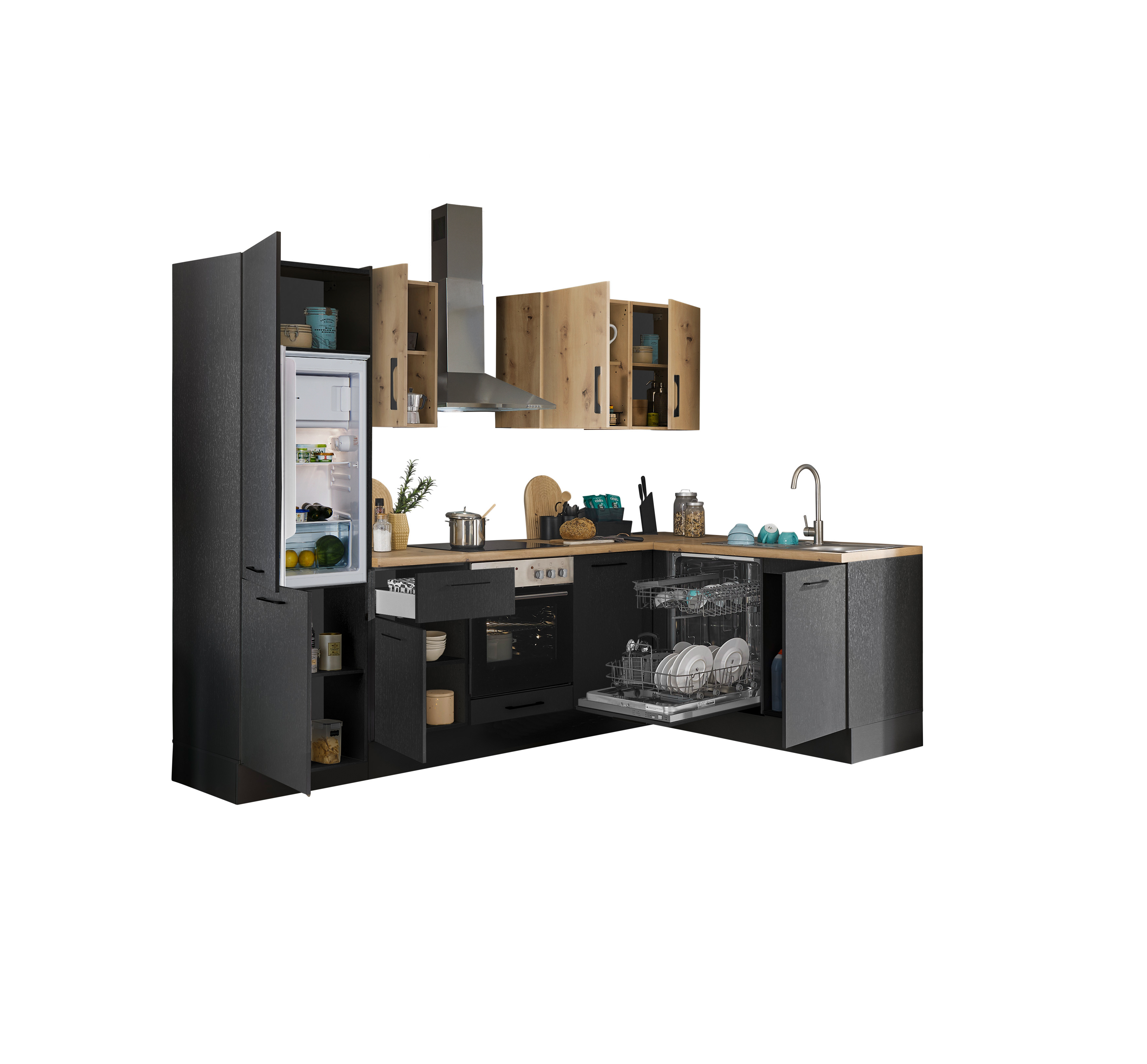 Bloc cuisine avec électroménager CORNWALL (cuisine d'angle-lave-vaisselle-réfrigérateur) III