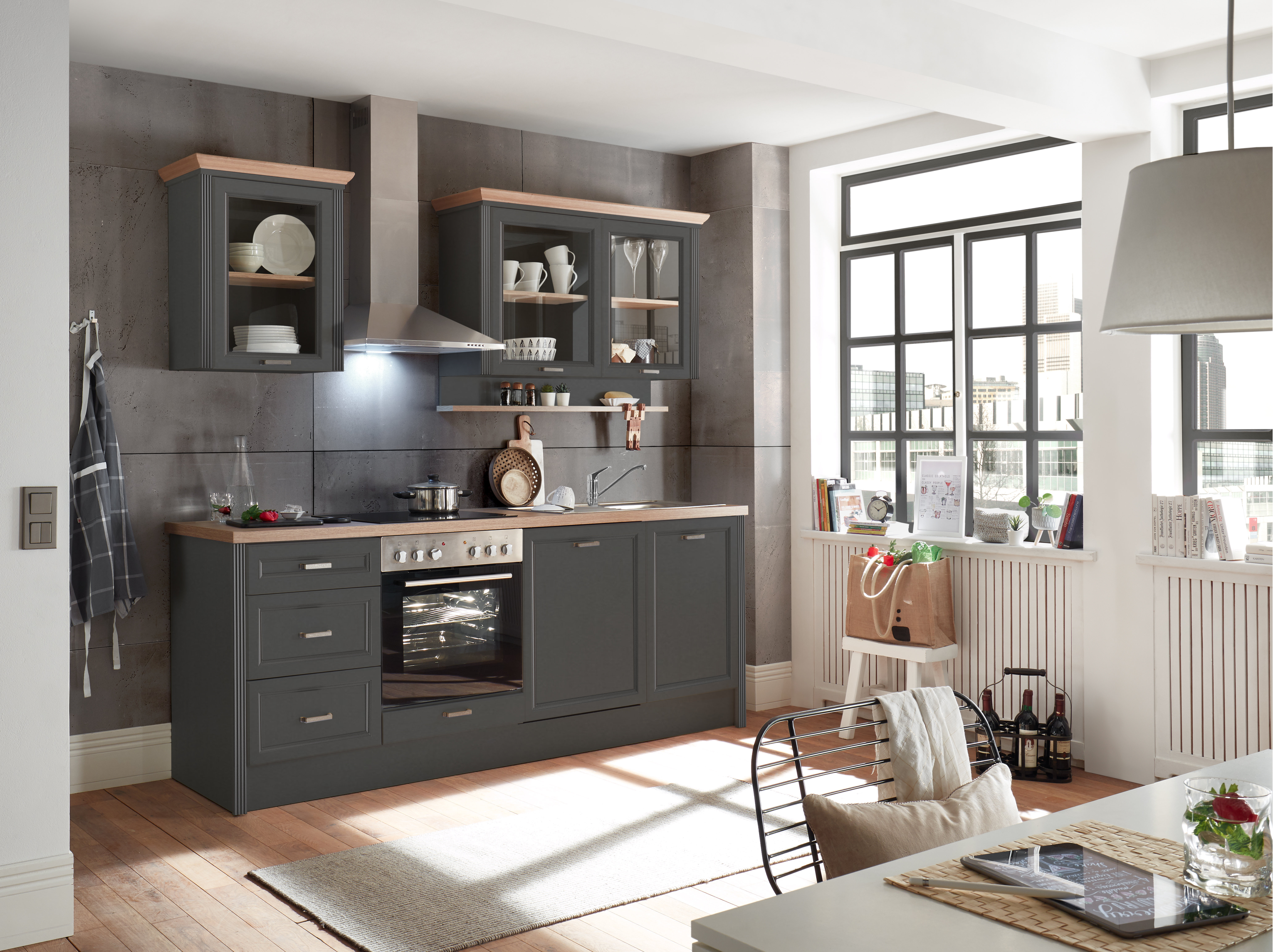 Façade : MDF (panneau de fibres de bois de densité moyenne) pelliculé thermoformé ton anthracite mat
