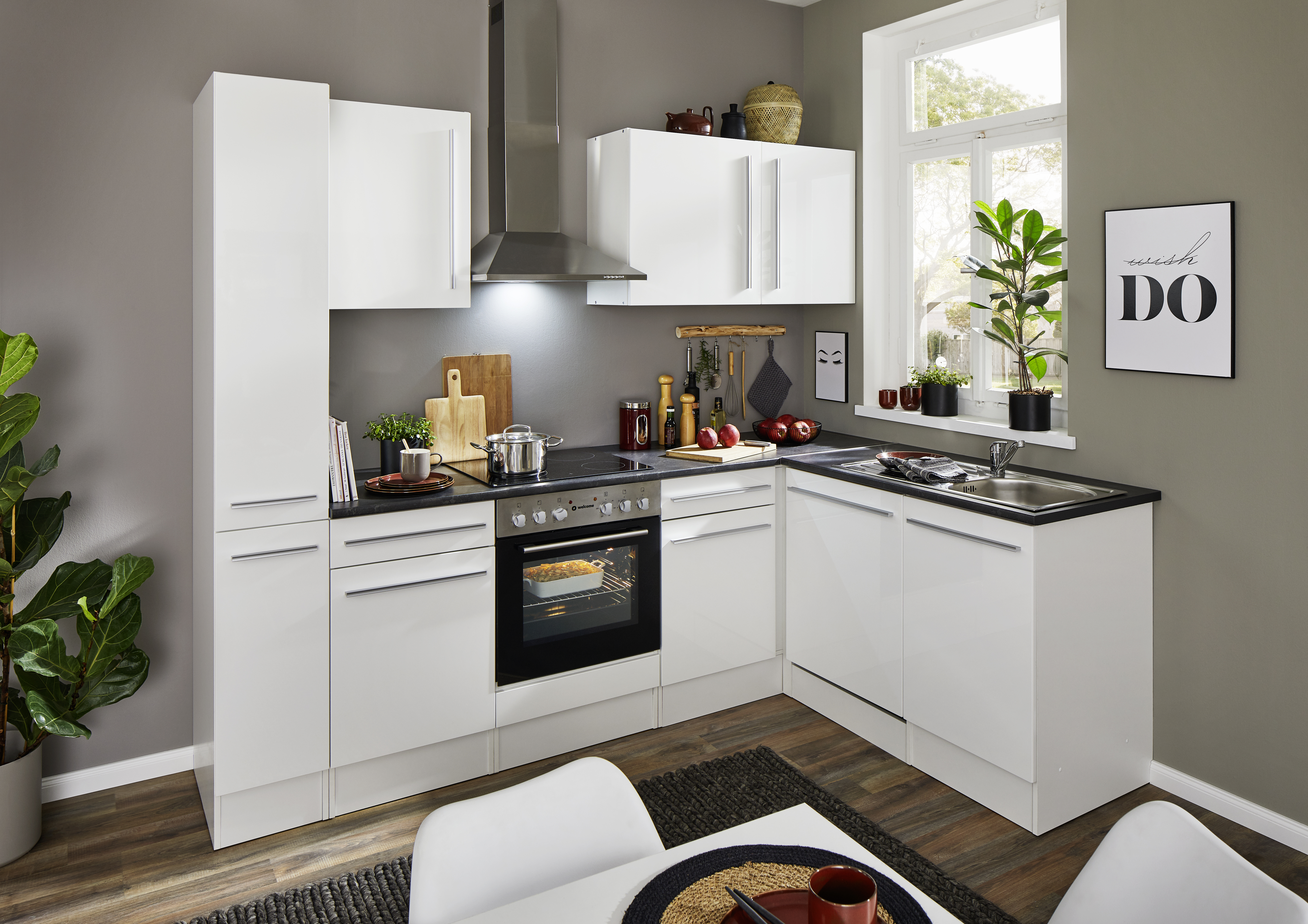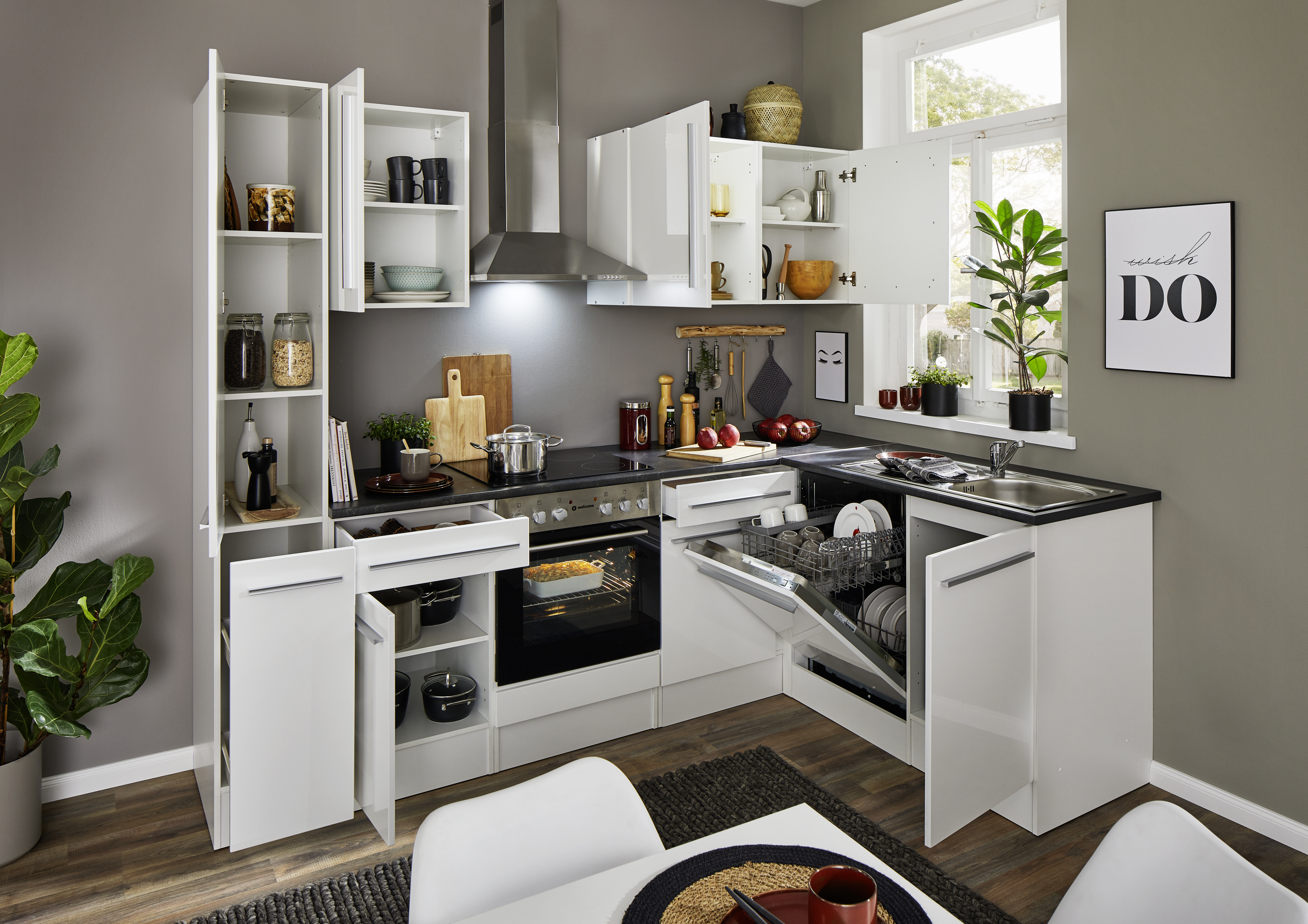 Bloc cuisine avec électroménager JAZZ 8 (cuisine d'angle - armoire coulissante) I