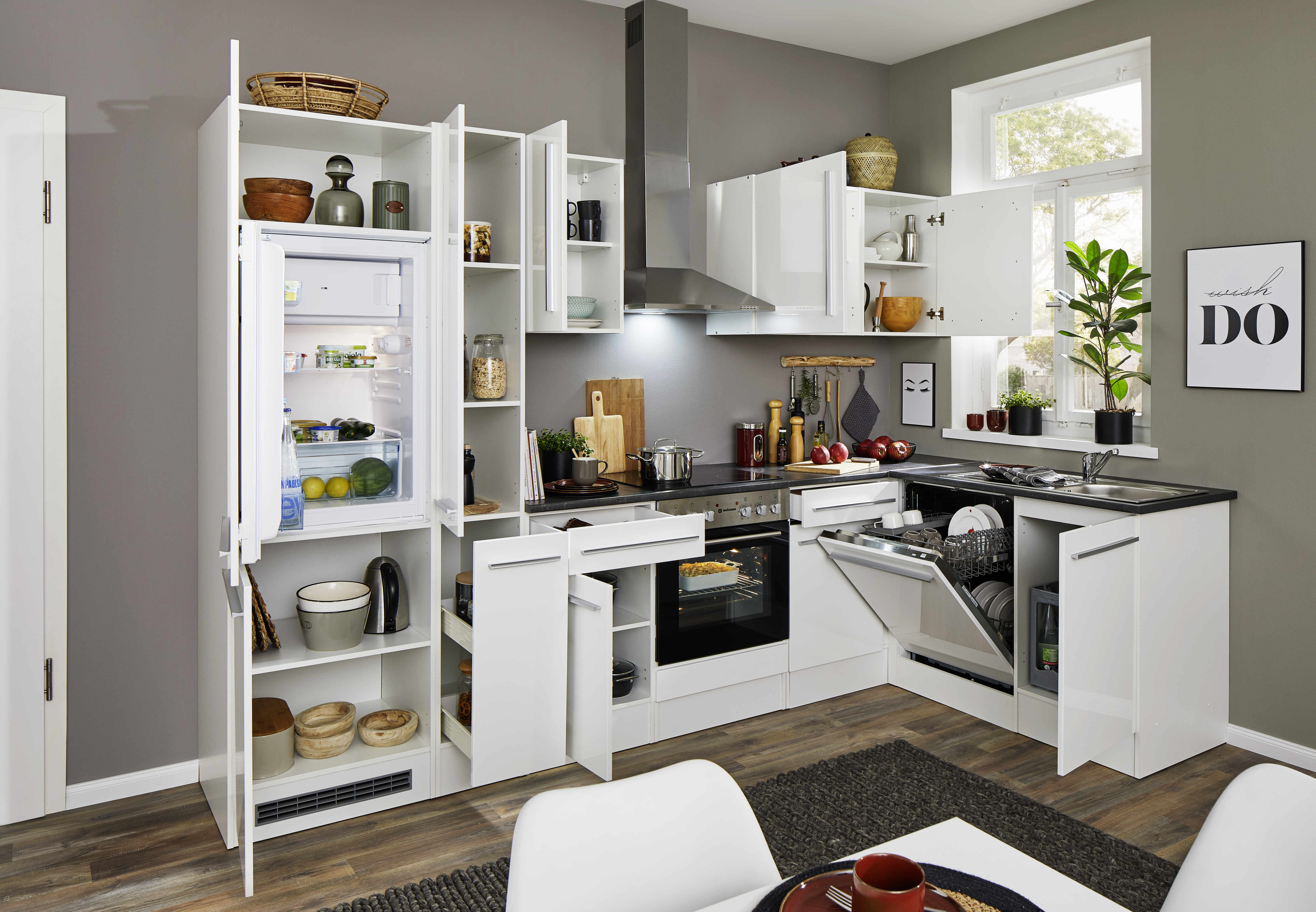 Bloc cuisine avec électroménager JAZZ 8 (cuisine d'angle-réfrigérateur-armoire coulissante) I