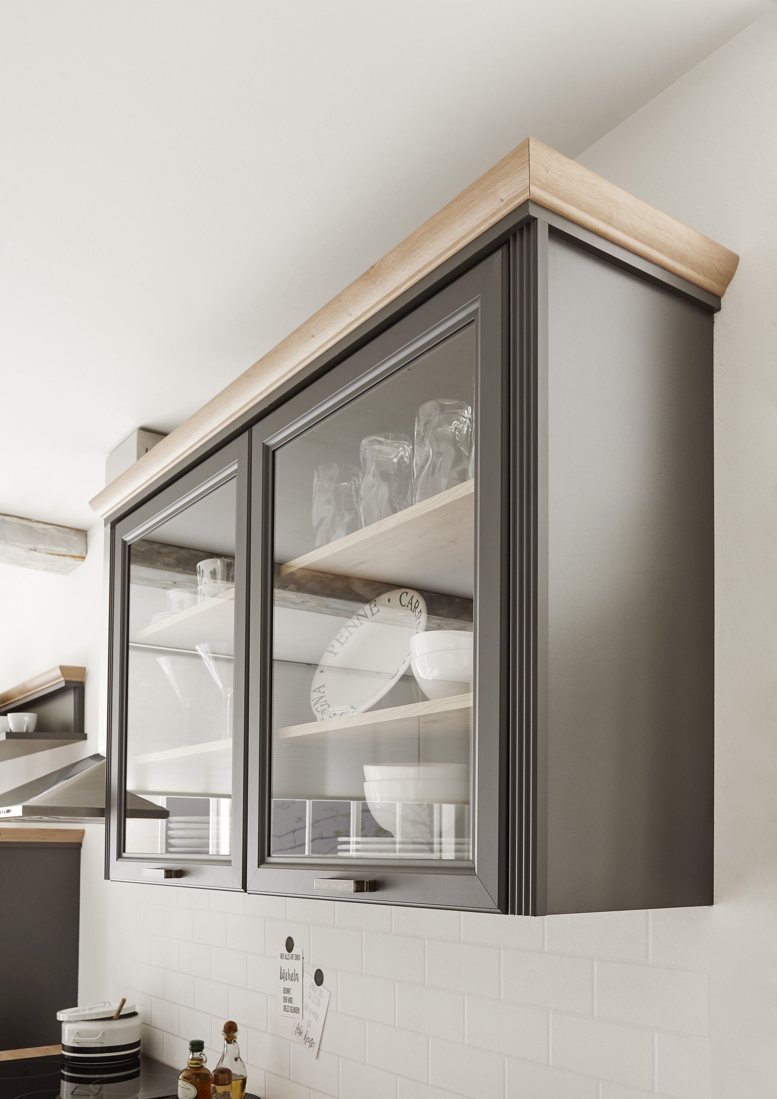 1 meuble haut avec 2 portes partiellement vitrées et 4 tablettes