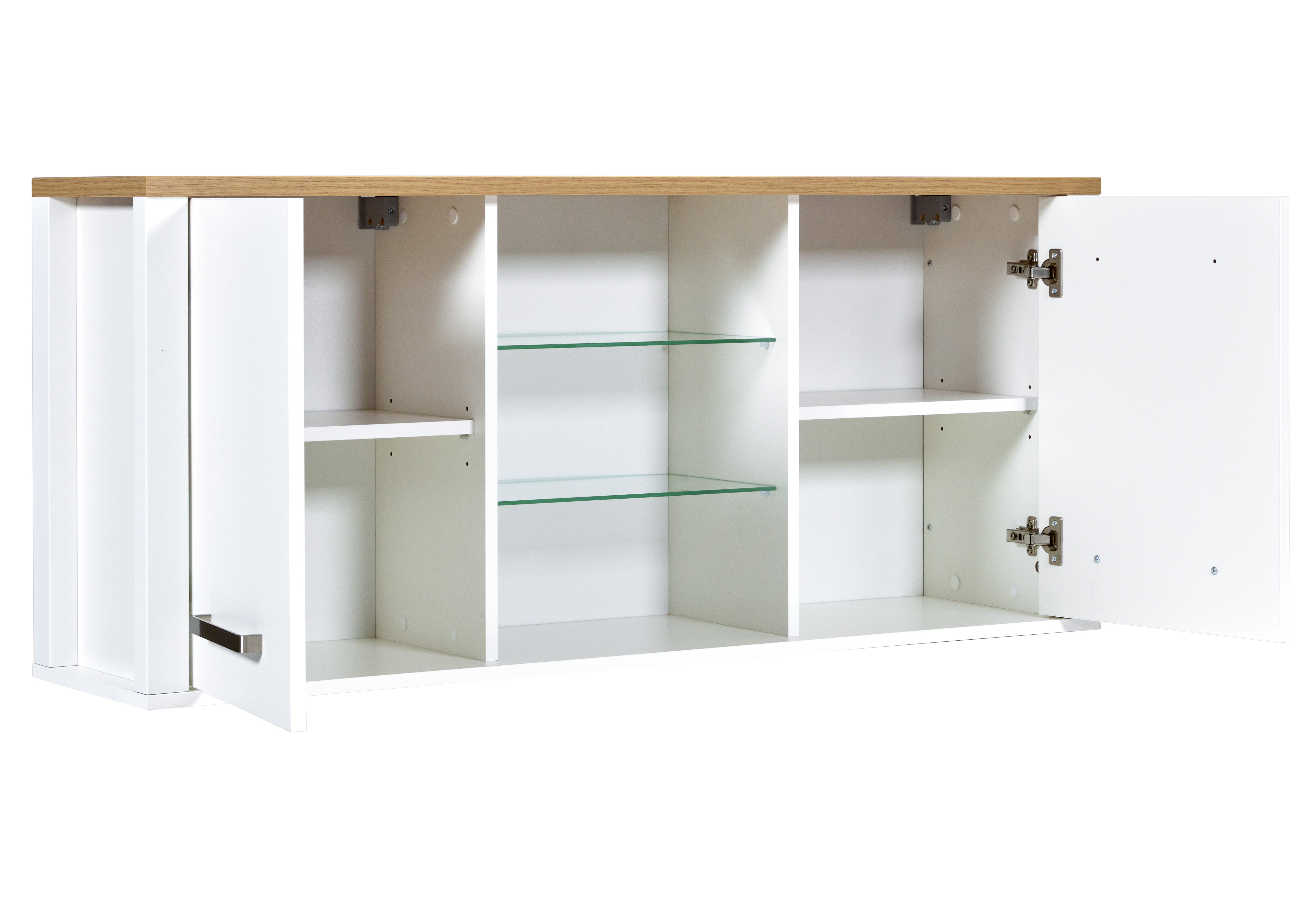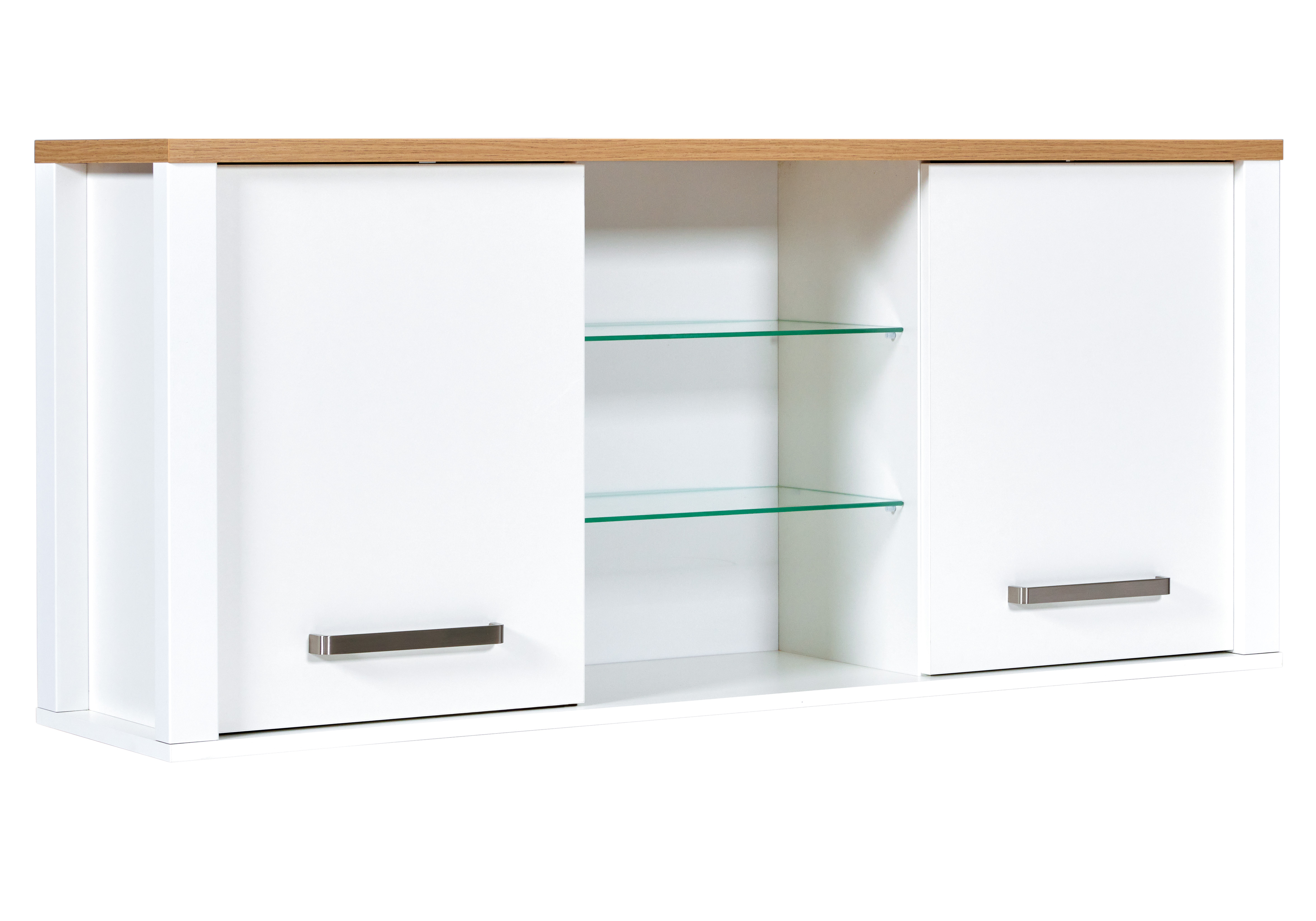 1 meuble haut avec 2 portes, 2 tablettes amovibles et 2 tablettes en verre