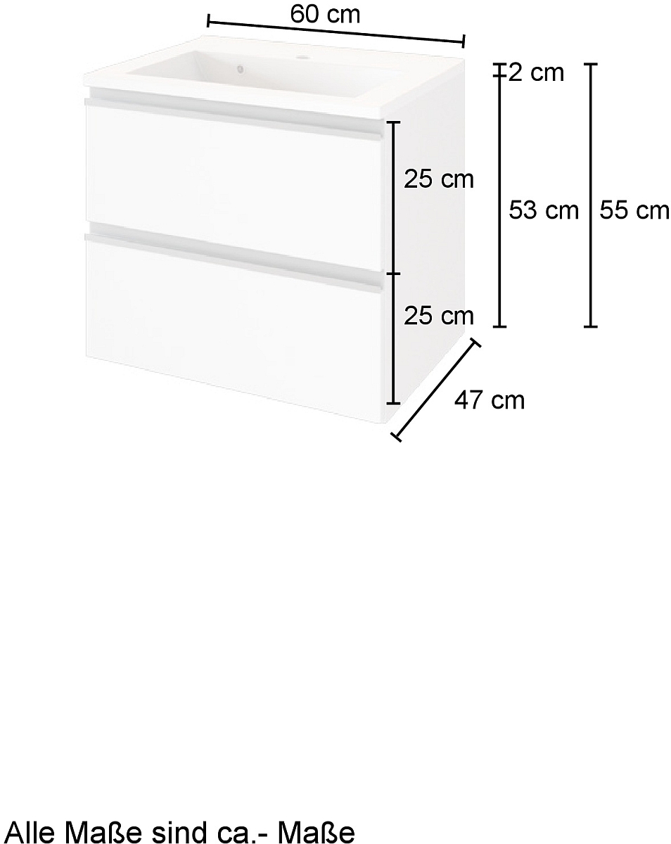 | Meuble sous vasque avec vasque en fonte minérale | 60 | 54 | 35 |