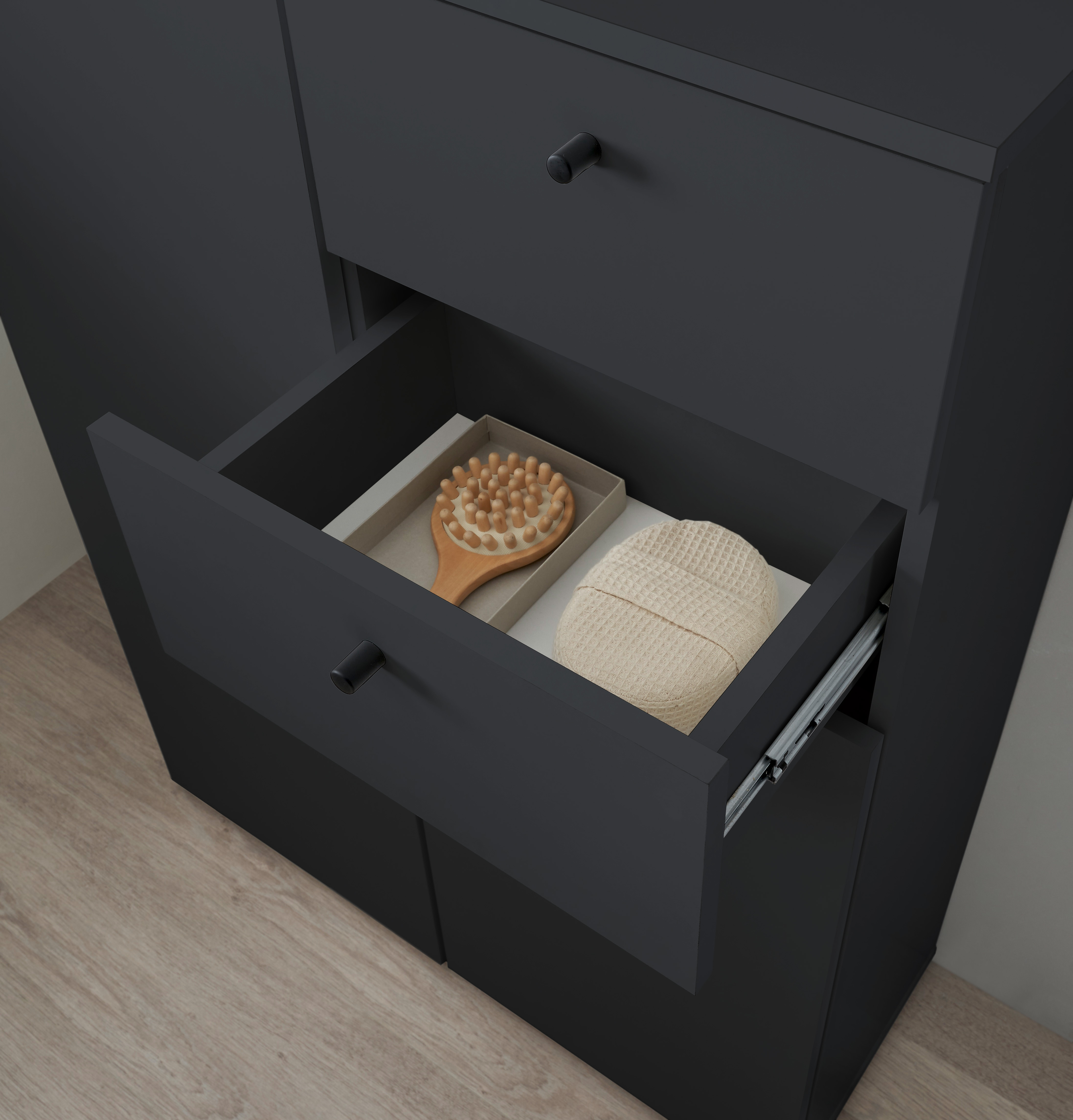 - Beaucoup d'espace de rangement grâce à deux portes et deux tiroirs