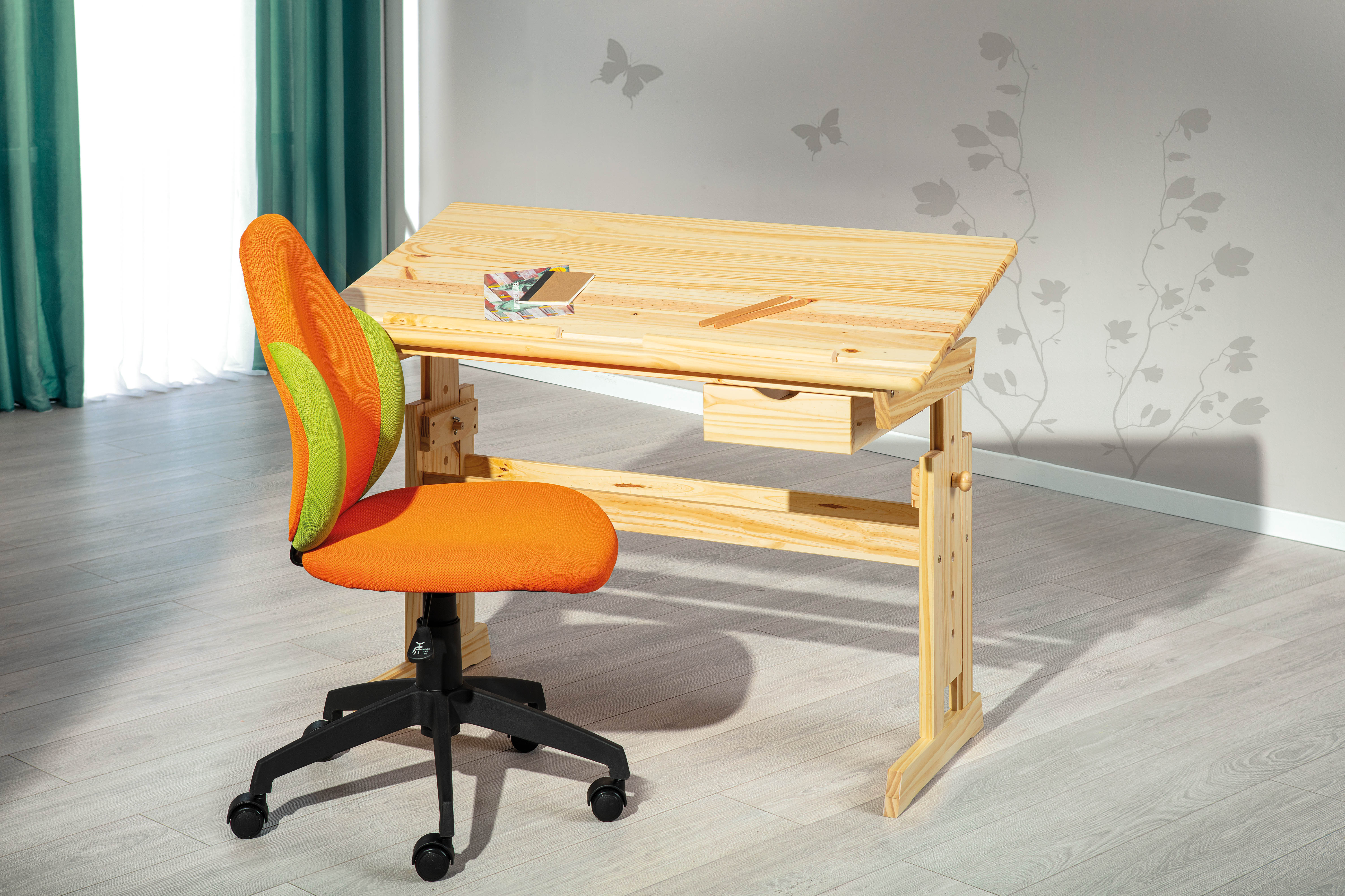 Grâce à la hauteur réglable et au plateau inclinable, le bureau peut être ajusté individuellement aux besoins de l’enfant : un modèle idéal pour dessiner, peindre ou apprendre.