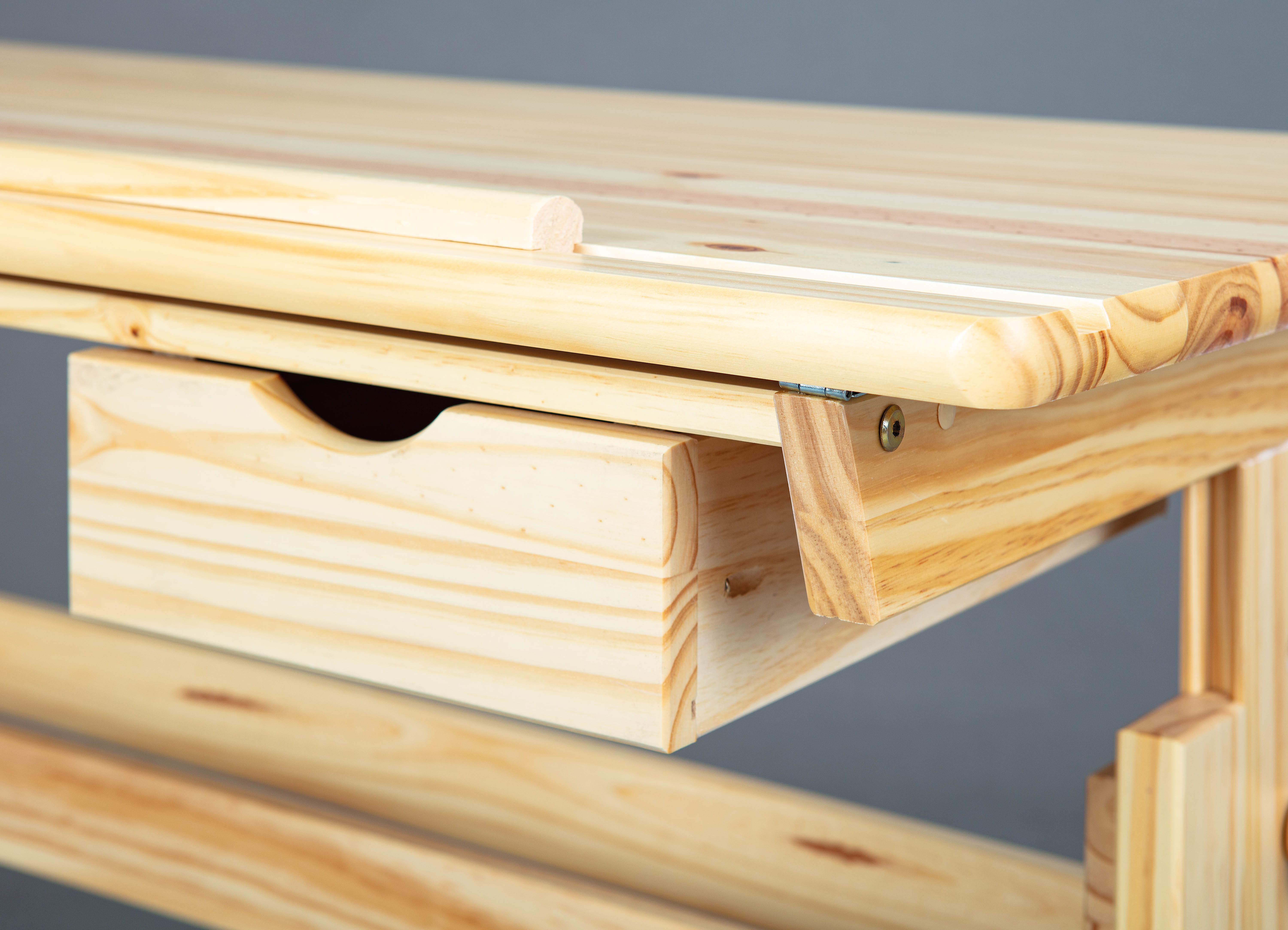 Le tiroir pratique permet de ranger soigneusement tout le matériel scolaire tel que les crayons, livres ou cahiers tout en maintenant un espace de travail ordonné et propice à l’apprentissage.