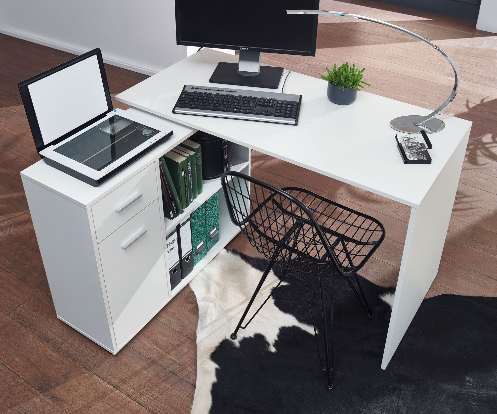 - FLEXIBLE ✔ Un bureau offrant de grandes surfaces de travail et beaucoup d’espace de rangement est l’allié idéal pour travailler efficacement, notamment à la maison. Un bureau d’angle est particulièrement adapté aux petites pièces. Équipé de deux casiers ouverts, d'un tiroir et d'un compartiment pourvu d'une porte, notre bureau propose tout ce qu’un véritable bureau a à offrir. De plus, vous avez la possibilité de disposer le bureau soit comme un bureau d’angle, soit tout en longueur - c’est à vous de choisir !