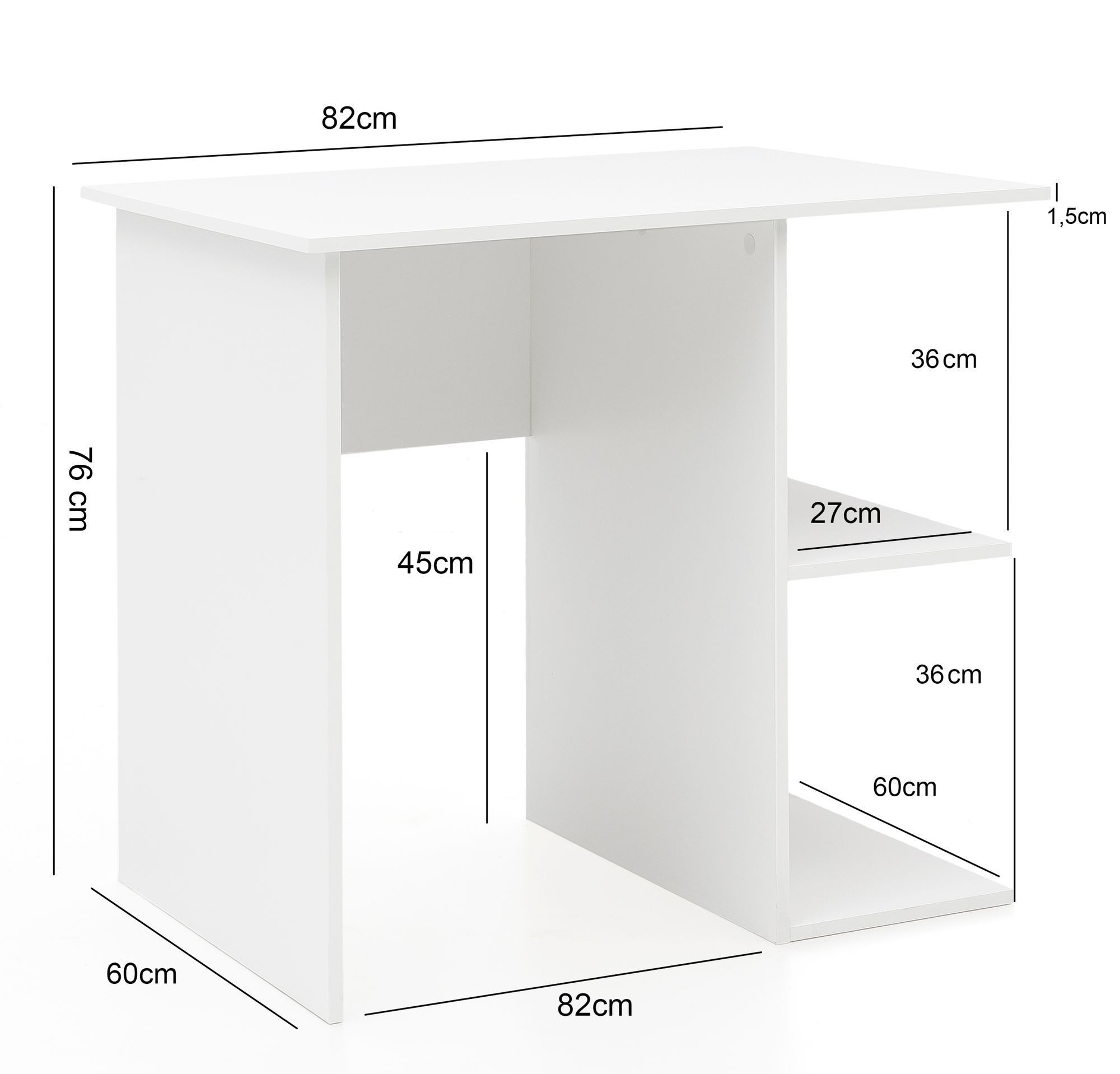 - UN MODÈLE DE TABLE PARTICULIER ✔ Même dans les petits appartements, il est difficile de renoncer à un bureau dans l'espace de travail. C'est là que notre bureau compact et design entre en jeu. Une grande surface de travail et 2 petites étagères simplifient le travail et permettent d'avoir tout à portée de main.