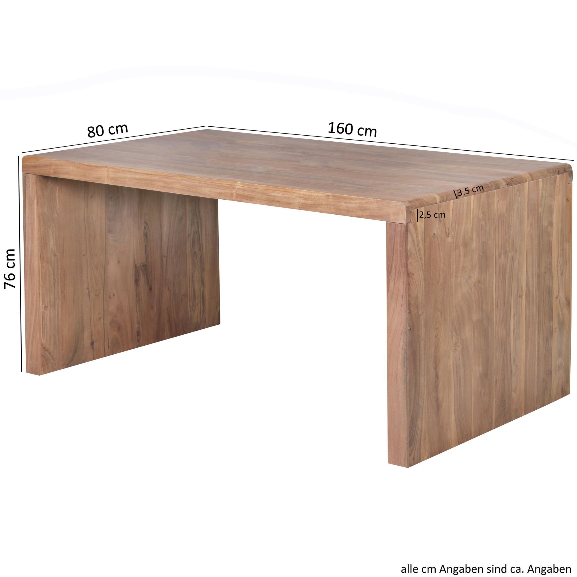 - Bureau en bois d'acacia massif à coins arrondis - Panneaux latéraux offrant une excellente stabilité.