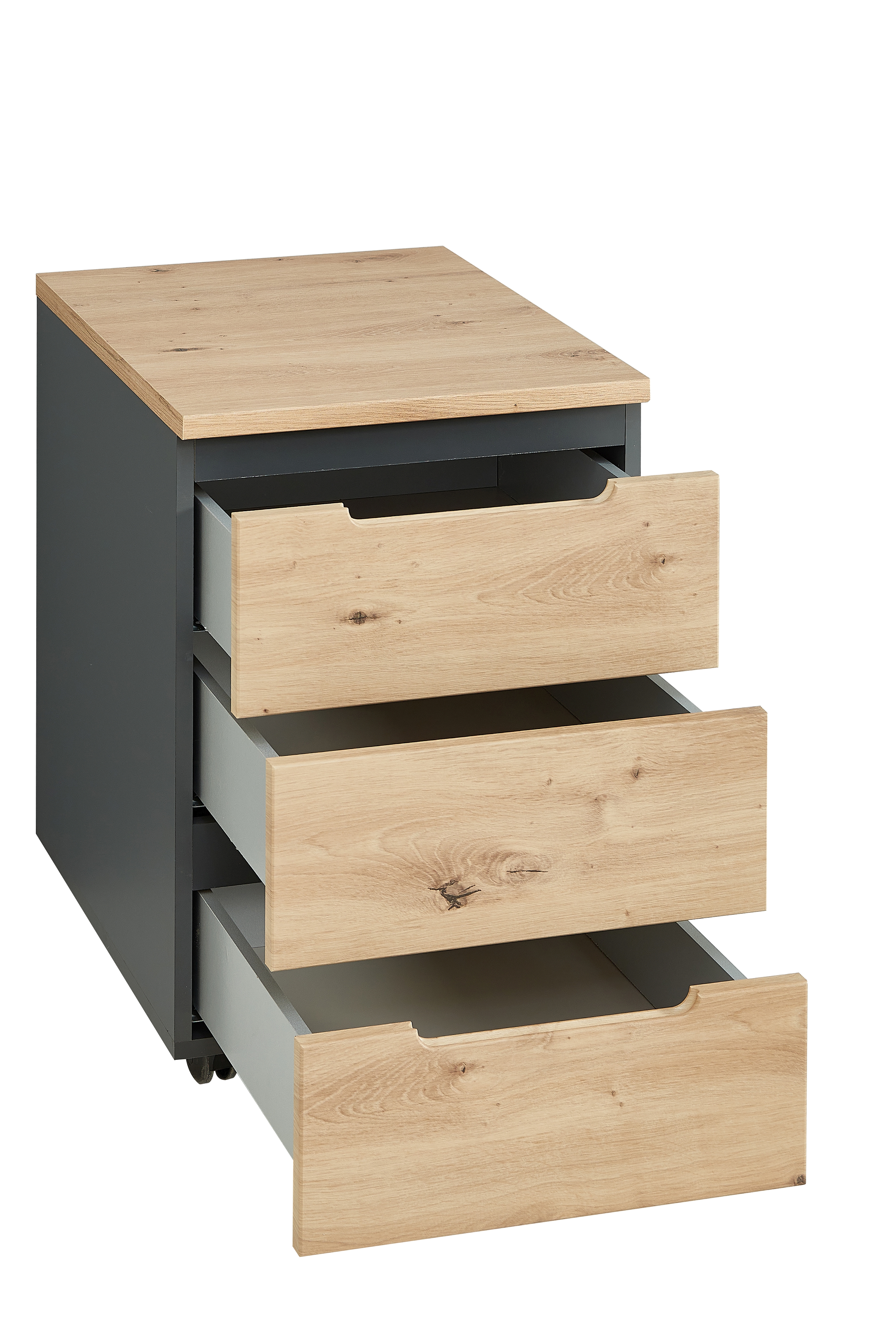 Caisson : ton graphite, panneau supérieur décor chêne Artisan