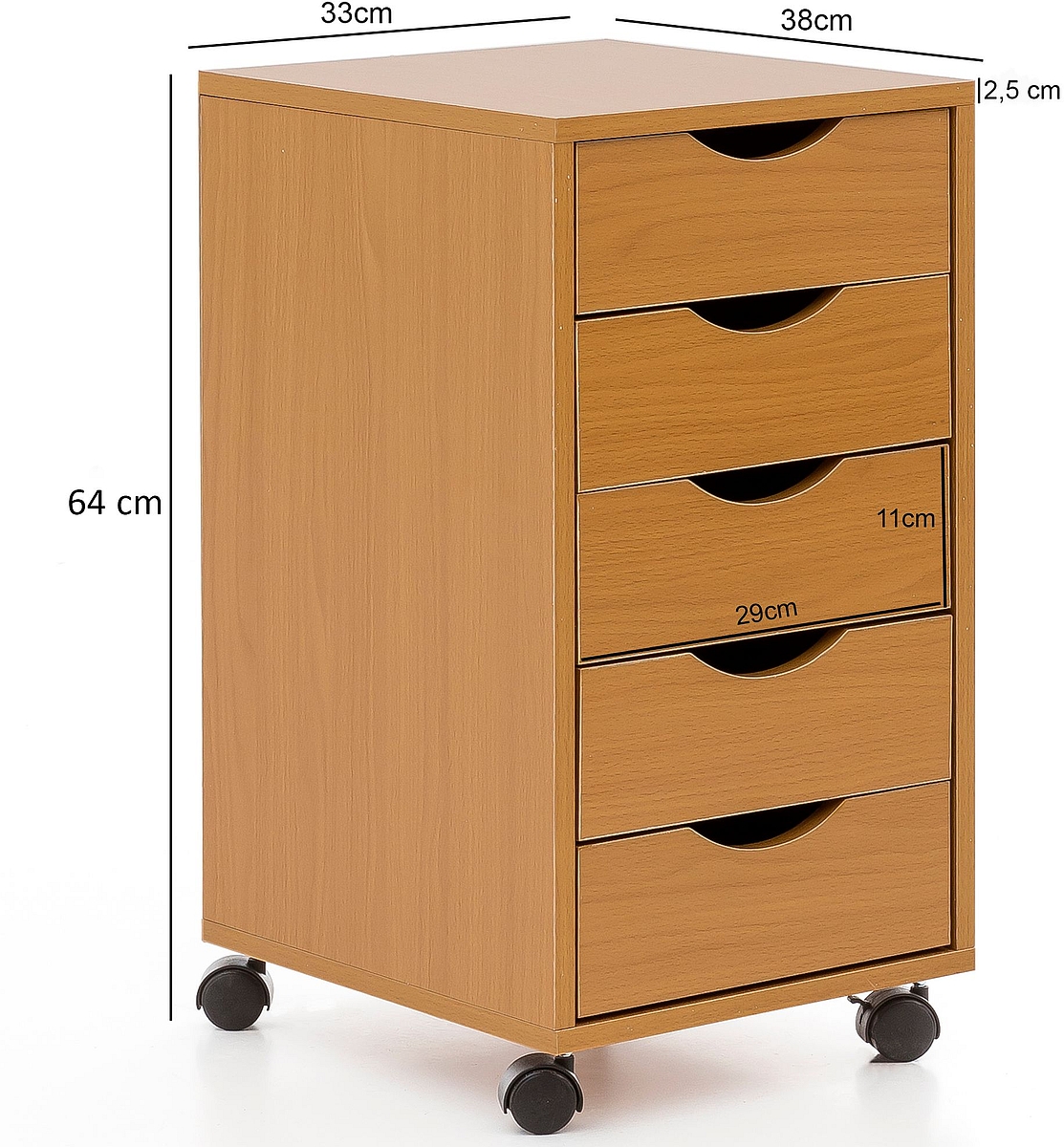 - ASSISTANCE DE BUREAU ✔ Stylos, perforatrice, agrafeuse, etc. sont omniprésents au bureau. Pour que ces accessoires indispensables ne traînent pas sur le bureau, cet élément de rangement à roulettes ultra chic dispose de cinq tiroirs et d'un plateau. Un petit caisson à roulettes qui fait régner l'ordre.