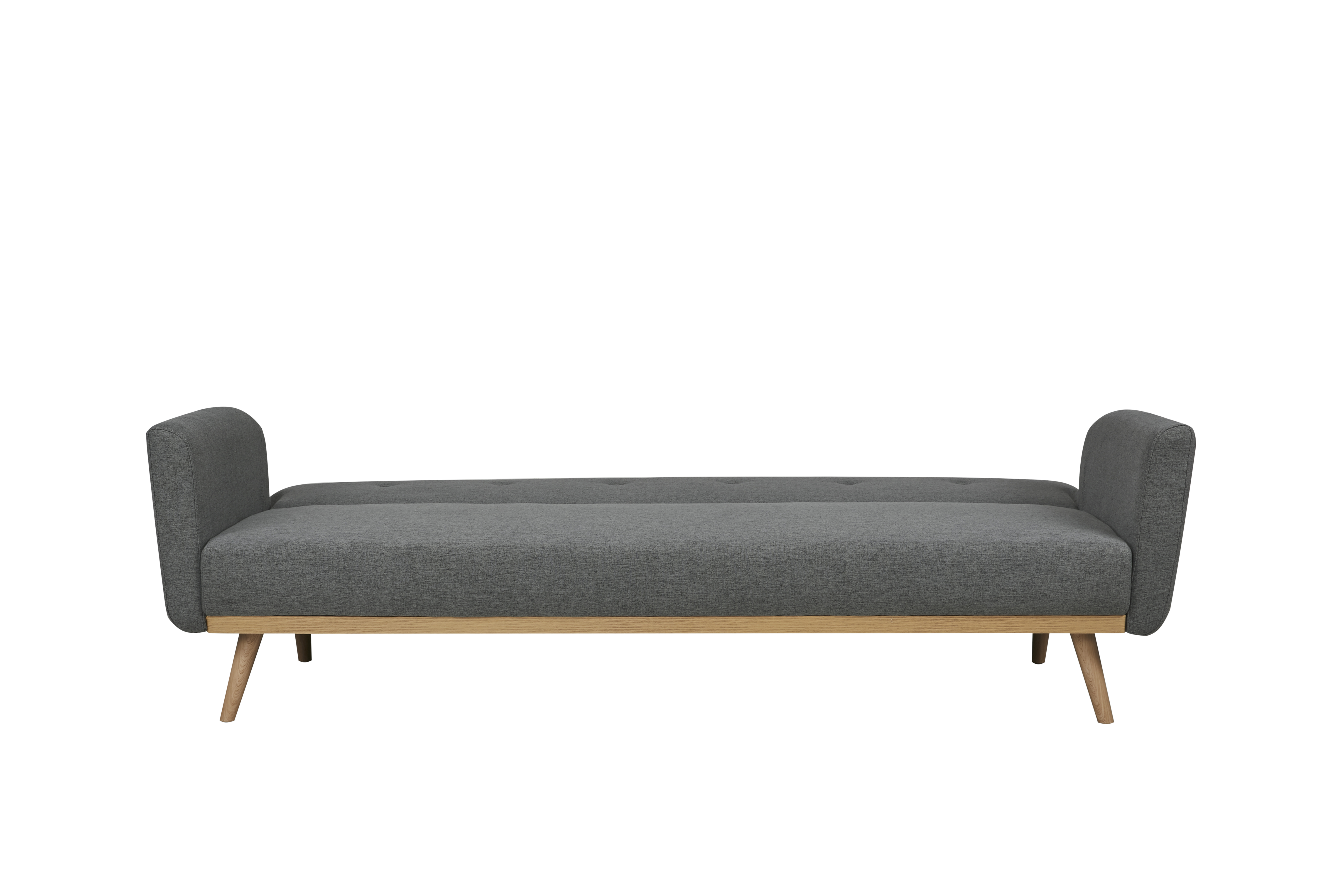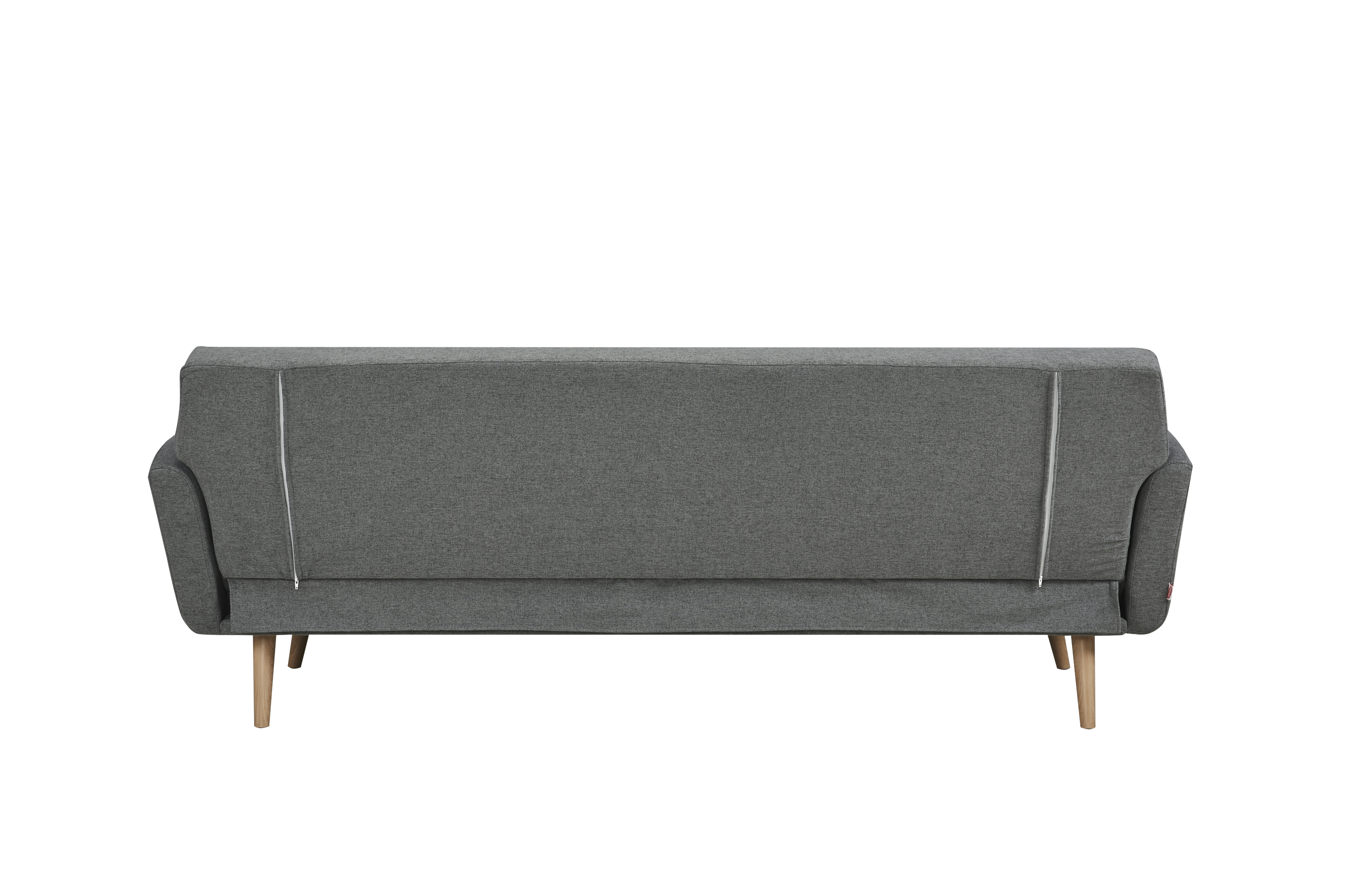 Le canapé-lit 3 places se présente dans un tissu chiné fin et stylé ton gris avec des pieds stables en bois massif. Grâce au dossier rabattable, le canapé peut être rapidement transformé en lit. La structure en bois massif garantit une bonne stabilité tout en offrant un superbe contraste avec le revêtement en tissu. La housse revêt entièrement le canapé et le dos est habillé. Grâce au rembourrage de ce canapé convertible, vous bénéficiez d'un confort d'assise ou de couchage haut de gamme. Les boutons décoratifs au niveau du dossier sont un véritable point fort. Ce petit bijou en matière de design deviendra vite un élément phare de votre intérieur ainsi que votre nouvel espace de détente.