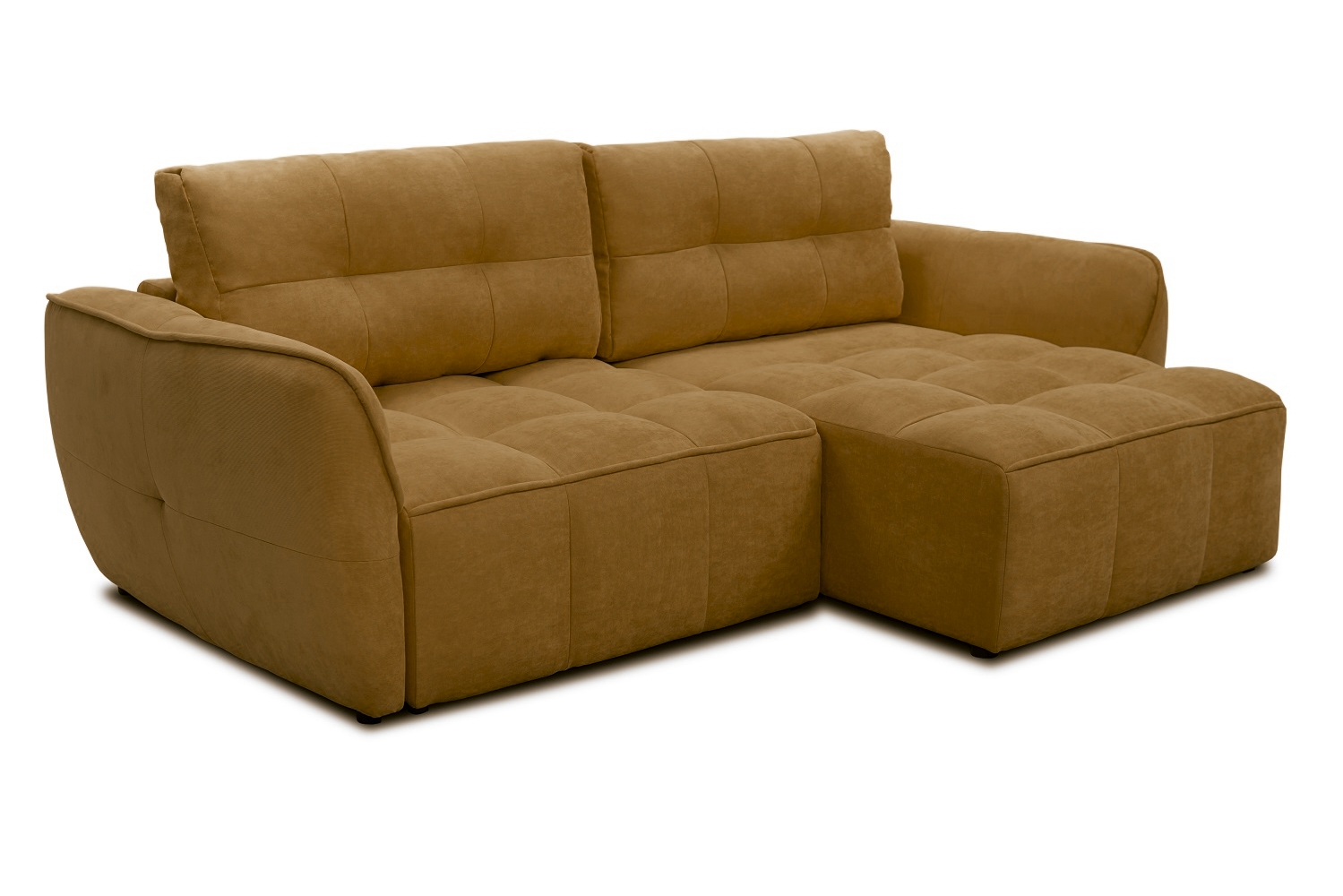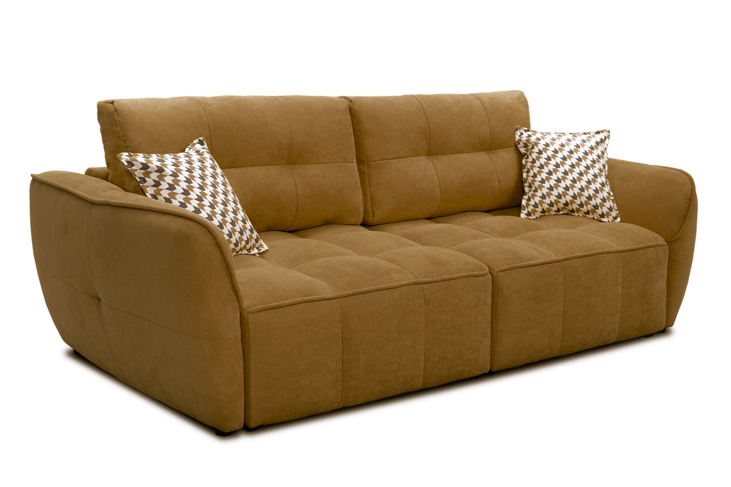 Revêtement : tissu Modesto 490 ton jaune doré 100% polyester ; coussins décoratifs ton multicolore 100% polyester