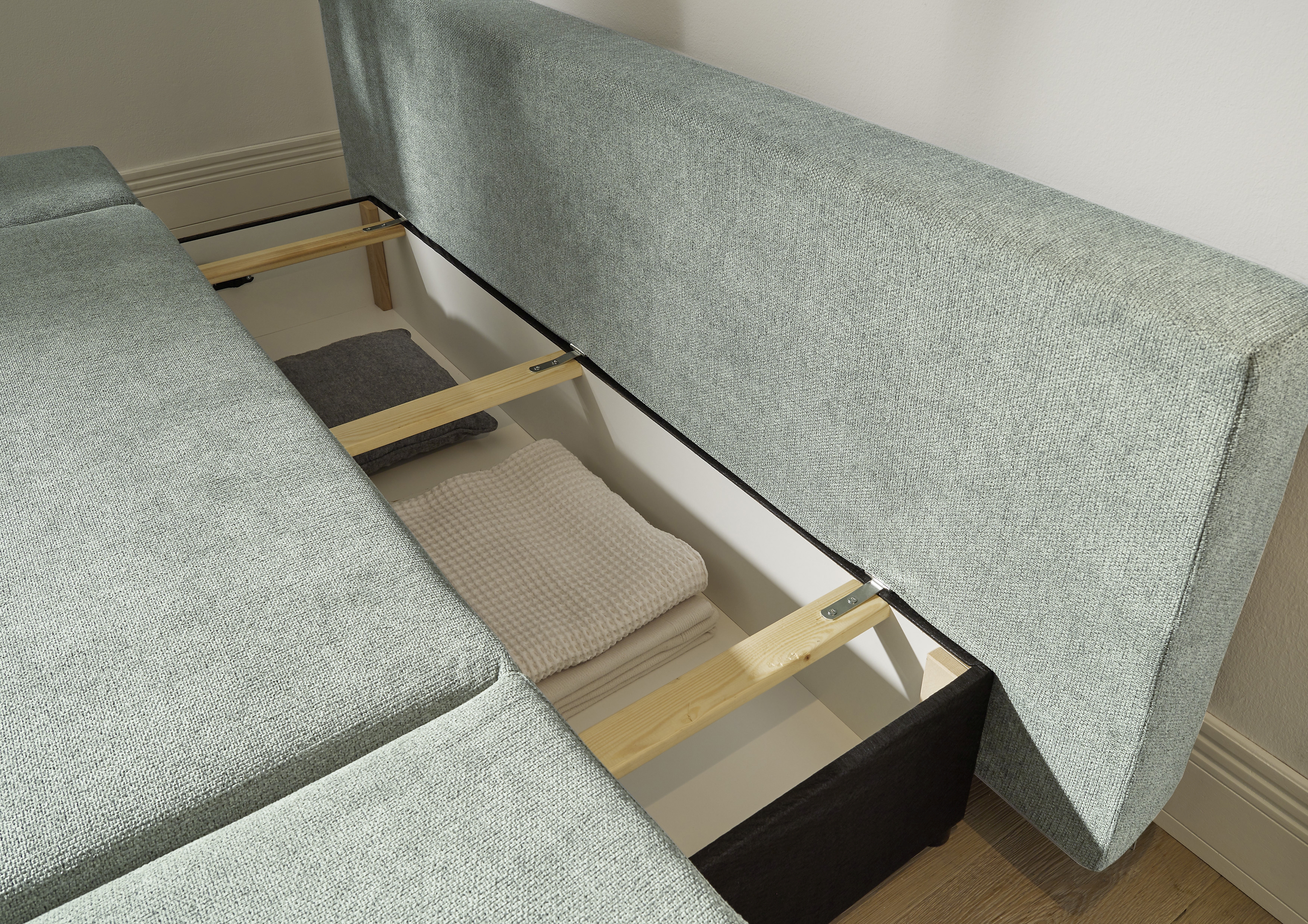 | Equipement canapés: | Dos habillé, incl. coffre de lit | ||