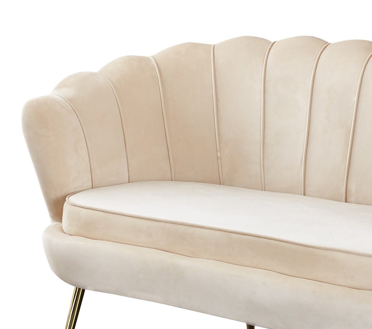 Échappez au quotidien et profitez d'une petite pause. Ce canapé moderne au design coquillage est revêtu d’un tissu élégant aspect velours et séduit par son assise et son dossier arrondis. Le piètement à 4 pieds en métal ton doré garantit une excellente stabilité tout en offrant un superbe contraste avec le revêtement du canapé. Grâce au rembourrage de l’assise et du dossier, au coussin d’assise surélevé et à la forme stylée, vous bénéficierez d’un niveau de détente optimal. Sa forme arrondie lui donne un look tout en douceur. Ce canapé coquillage est un véritable petit bijou qui sera à la fois un élément phare dans votre intérieur et votre nouvel espace bien-être.