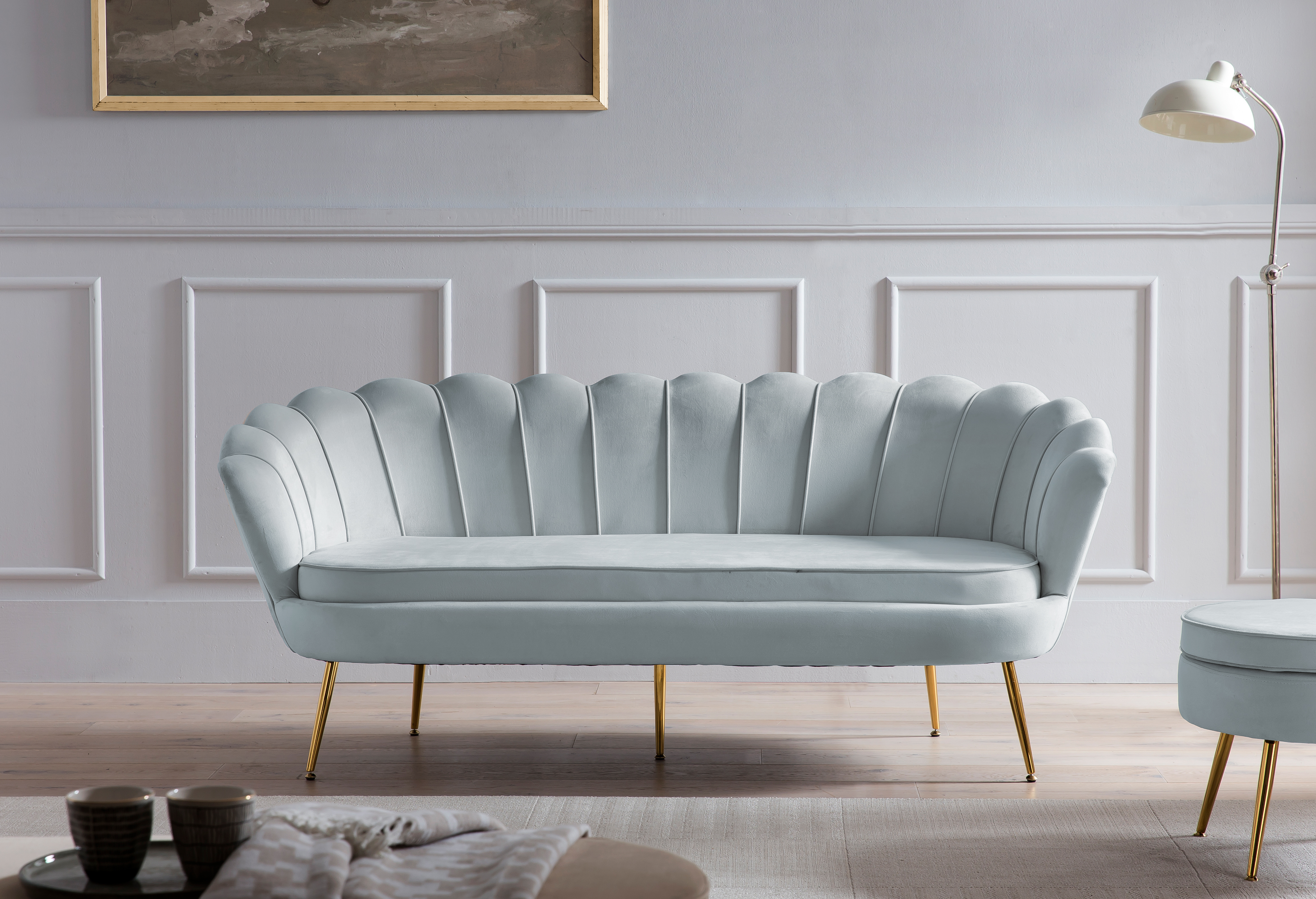 Échappez au quotidien et profitez d'une petite pause. Ce canapé 3 places moderne au design coquillage est revêtu d’un tissu élégant aspect velours et séduit par son assise et son dossier arrondis. Le piètement à 4 pieds en métal ton doré garantit une excellente stabilité tout en offrant un superbe contraste avec le revêtement du canapé. Grâce au rembourrage de l’assise et du dossier, au coussin d’assise surélevé et à la forme stylée, vous bénéficierez d’un niveau de détente optimal. Sa forme arrondie lui donne un look tout en douceur. Ce canapé coquillage est un véritable petit bijou qui sera à la fois un élément phare dans votre intérieur et votre nouvel espace bien-être.