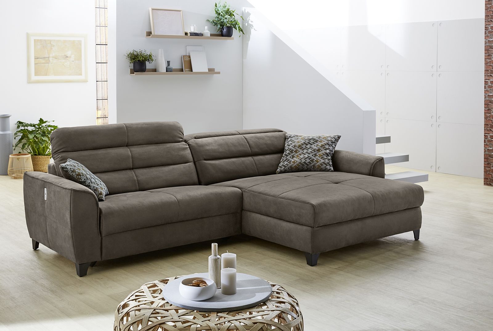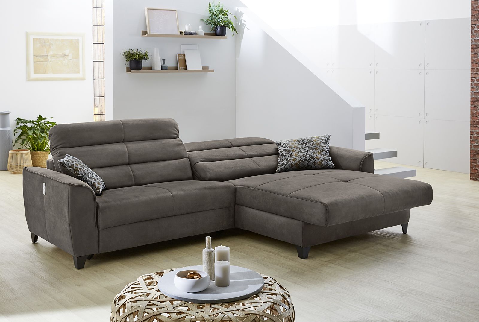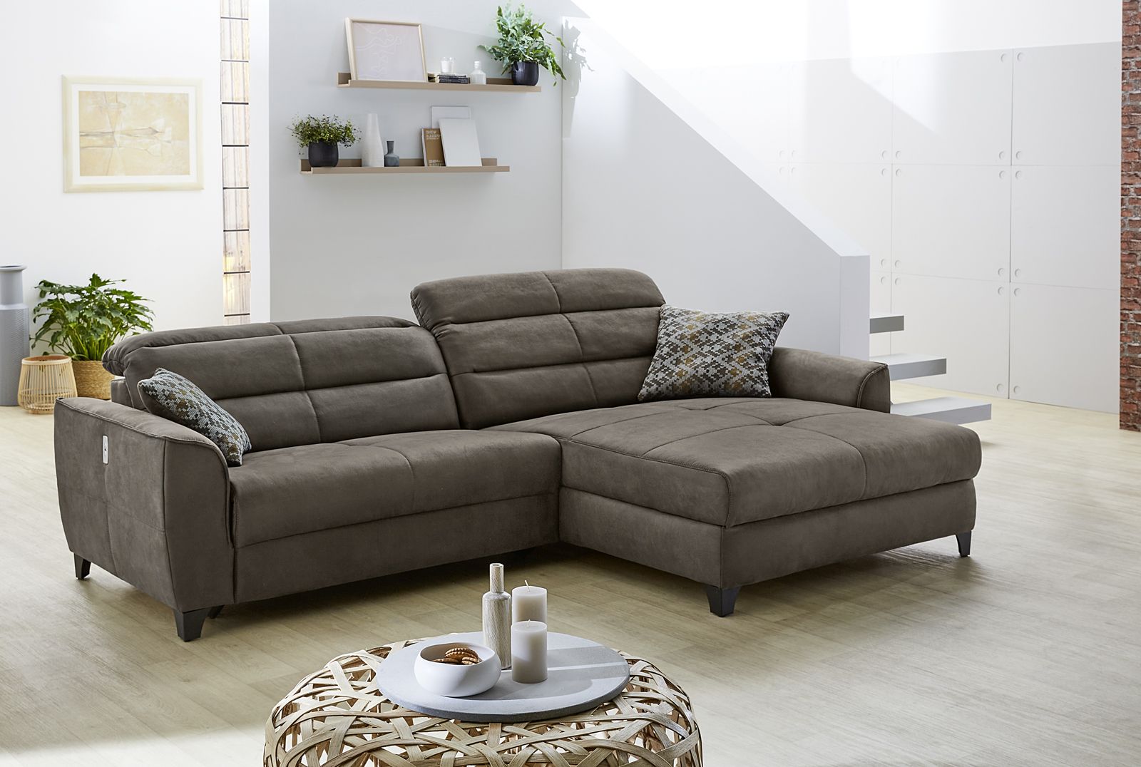 | Equipement canapés: | Appuie-tête(s), Dos habillé, Méridienne à droite ou à gauche, Port USB, incl. coussins | ||