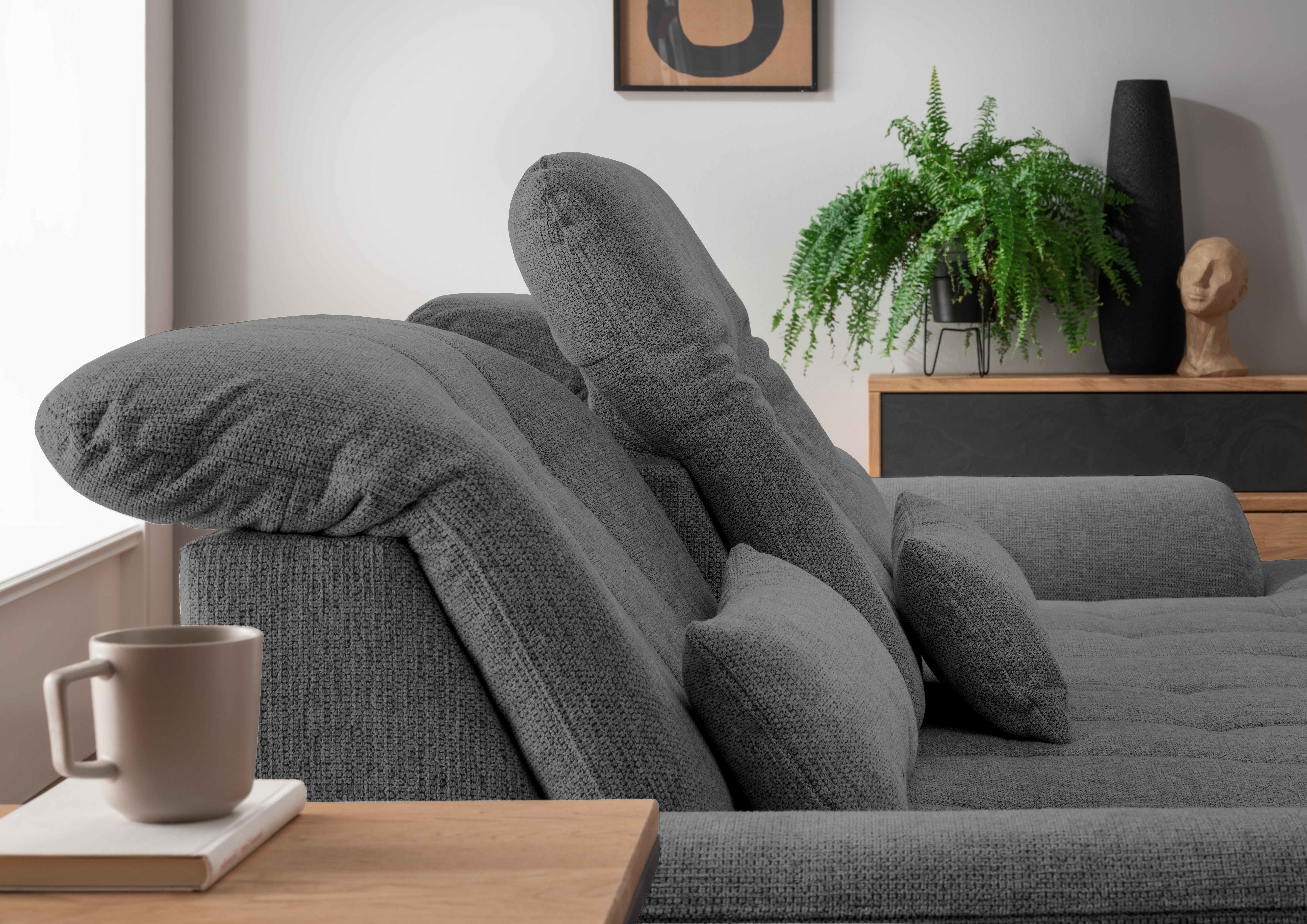 1 élément 2 places avec fonction lit, réglage de la profondeur d’assise et appuie-têtes relevables
