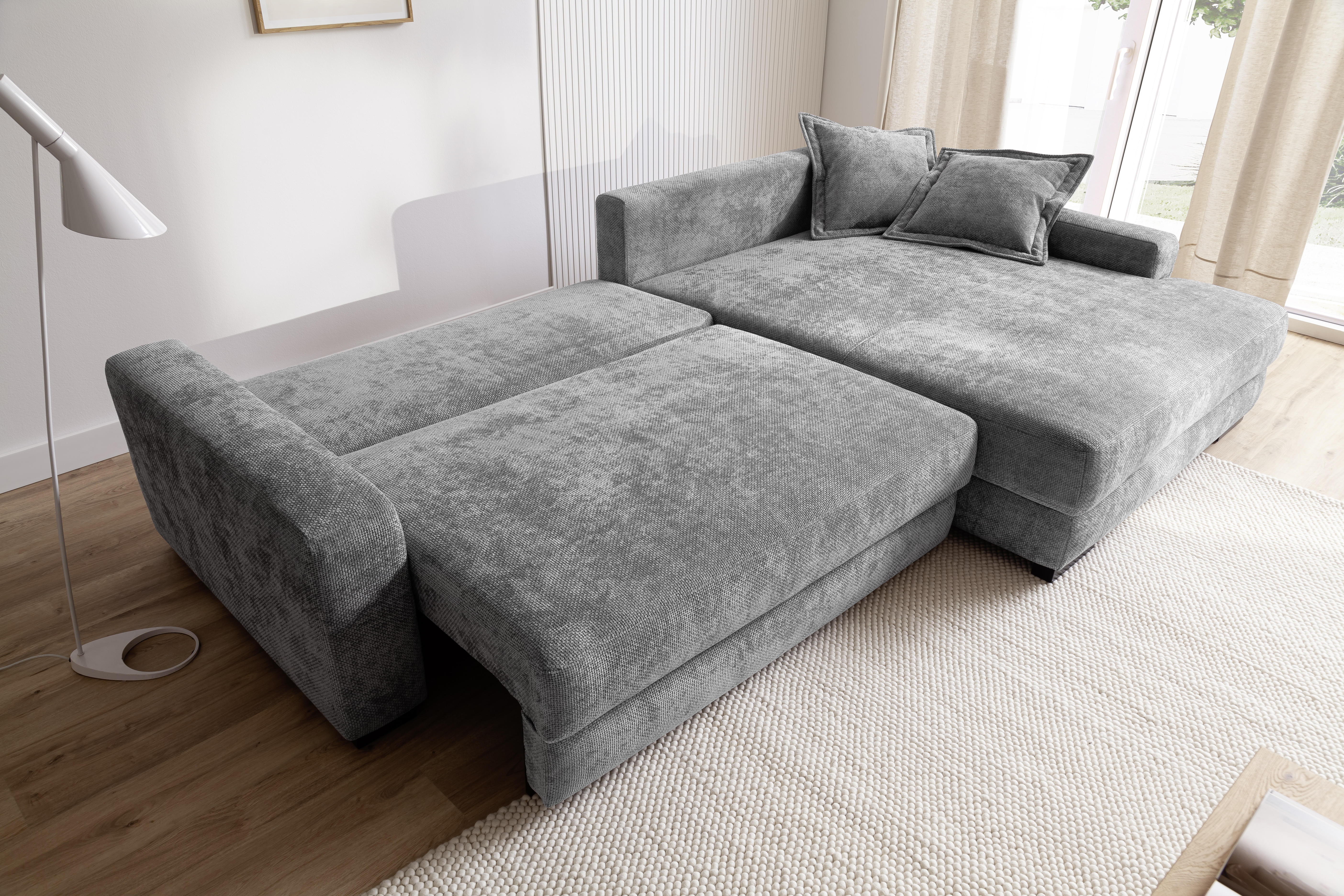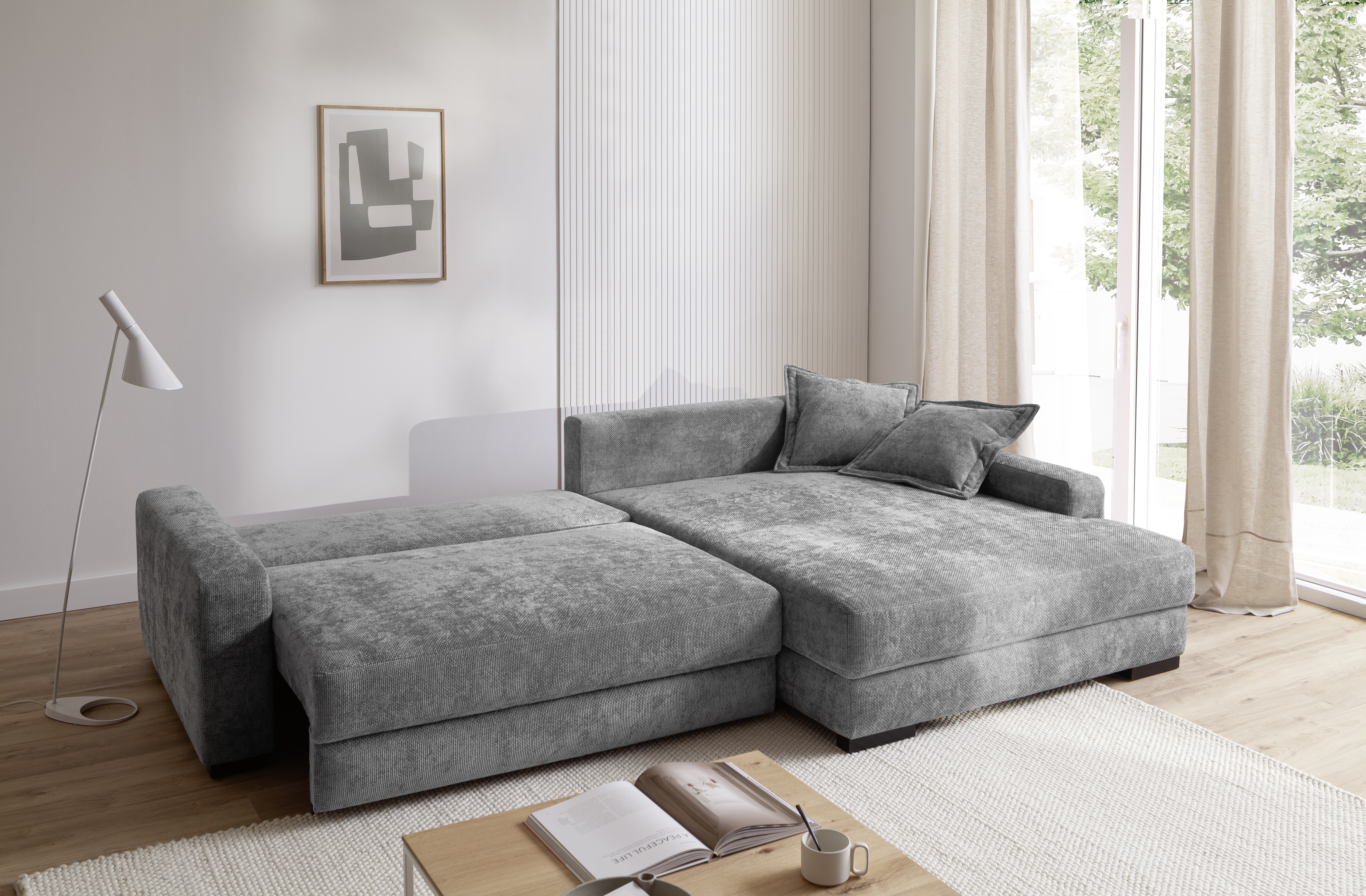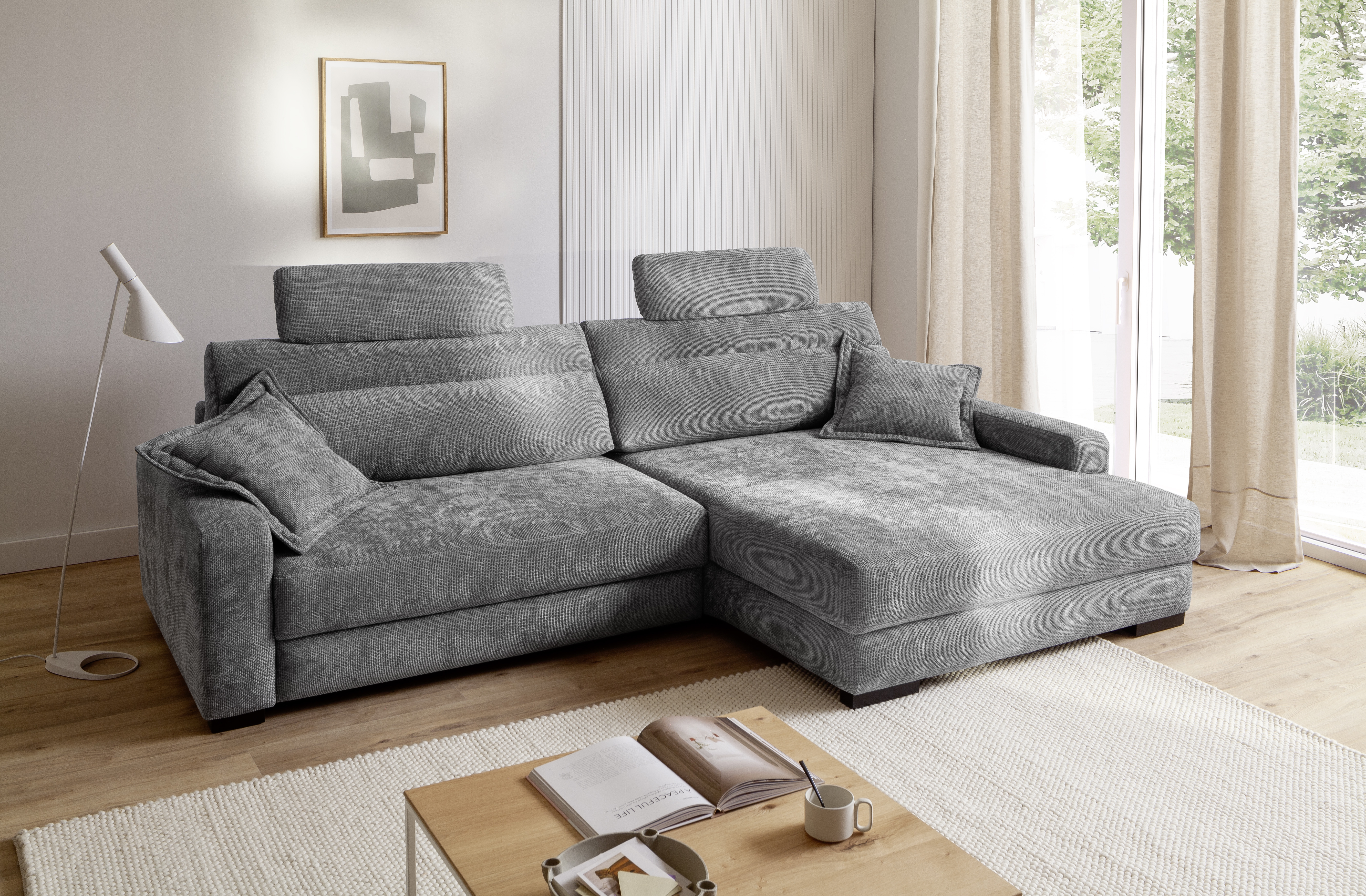 | Equipement canapés: | Dos habillé, Méridienne à droite ou à gauche, incl. coffre de lit, incl. coussins | ||