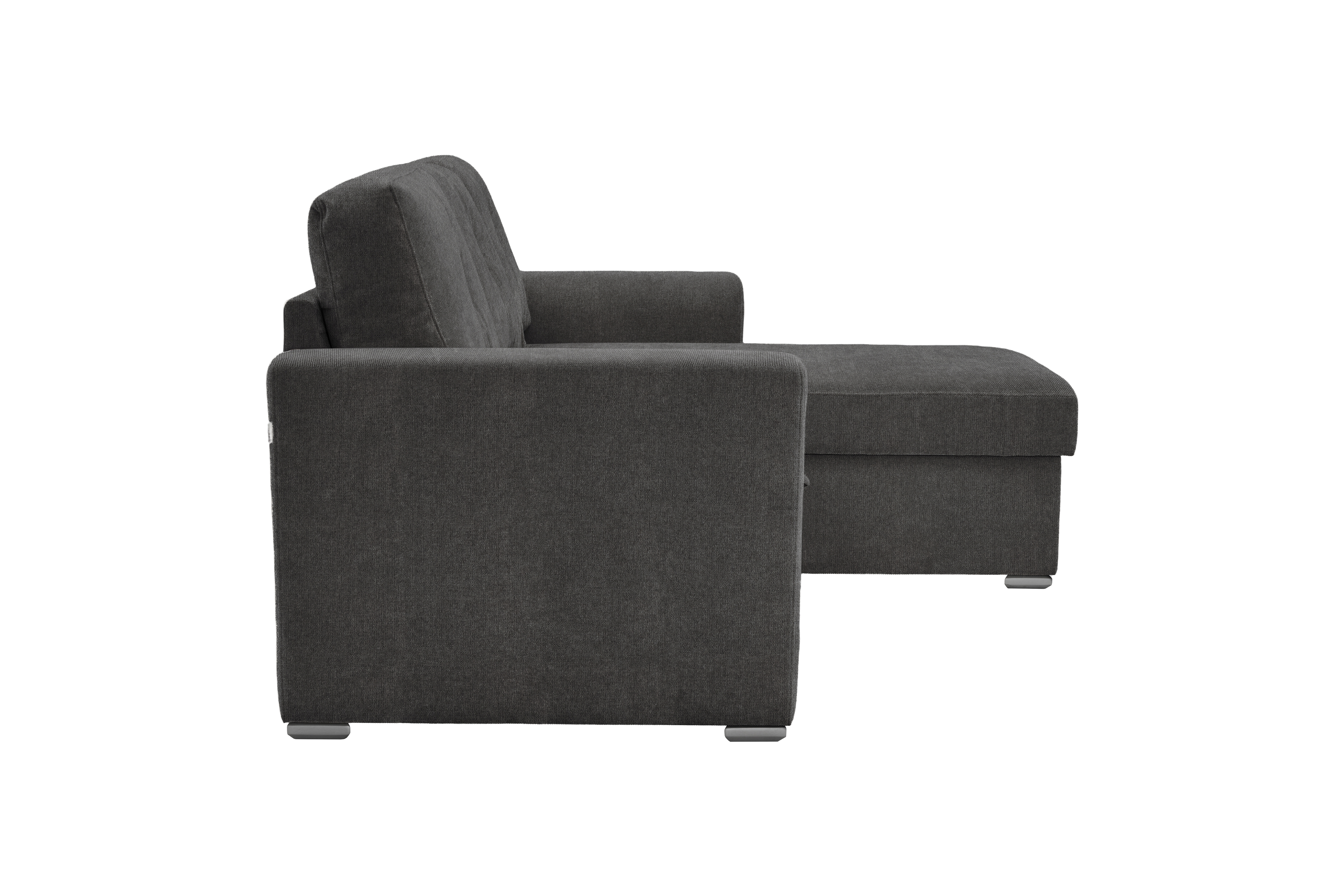 Ce canapé d'angle recouvert de tissu noir allie confort d'assise et fonctionnalité. Le revêtement Lord, 100 % polyester, est résistant et facile d'entretien, ce qui le rend idéal pour un usage quotidien. Grâce à sa fonction couchage intégrée, le canapé d'angle se transforme en un clin d'œil en surface de couchage et convient ainsi parfaitement pour accueillir des invités pour la nuit. La méridienne offre un espace de rangement supplémentaire pour les couvertures, les coussins ou d'autres accessoires de décoration. Avec ses lignes épurées et ses couleurs intemporelles, ce canapé d'angle s'adapte à différents styles d'intérieur et offre une solution bien pensée à un prix attractif.