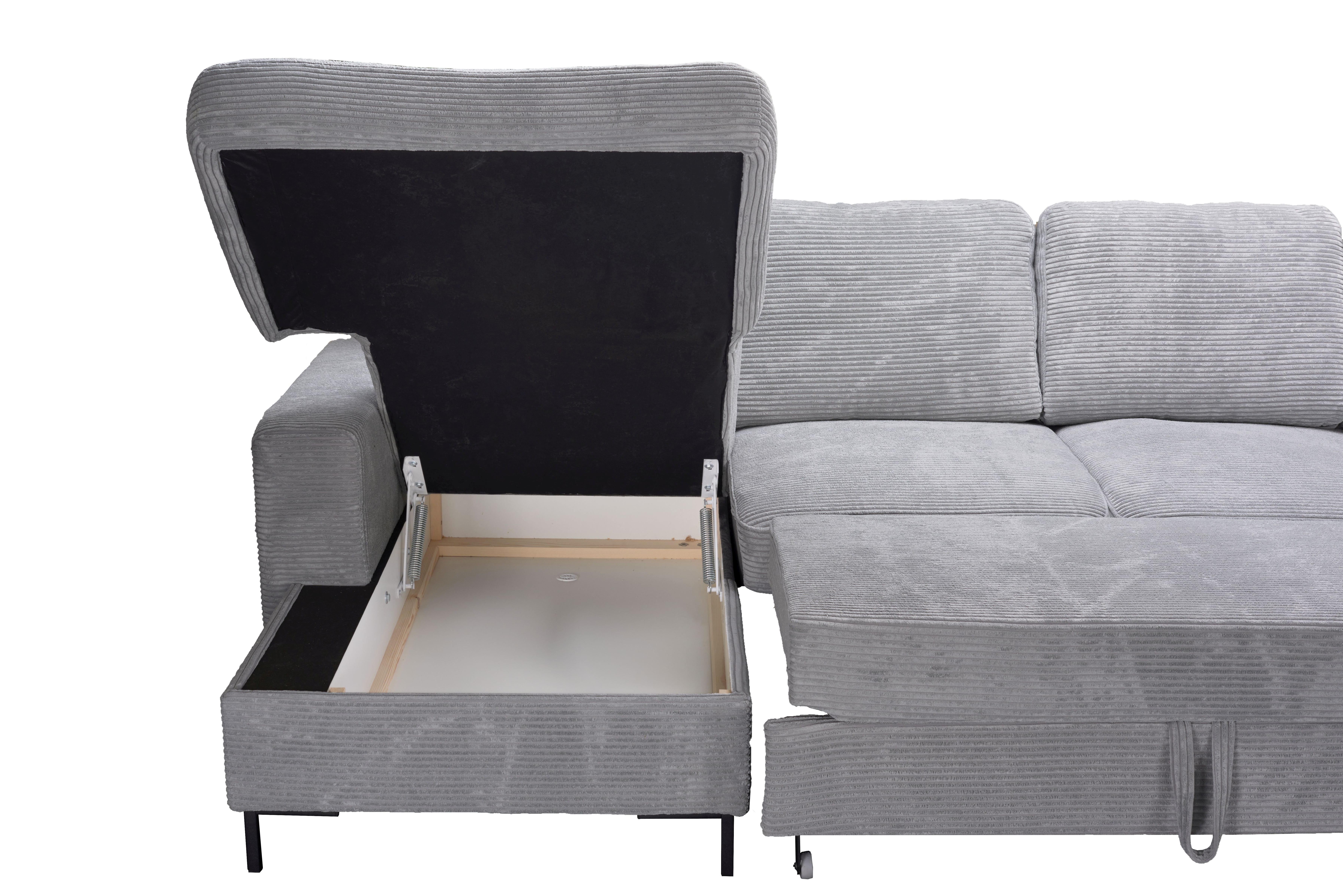 | Equipement canapés: | Méridienne à droite, incl. coffre de lit | ||