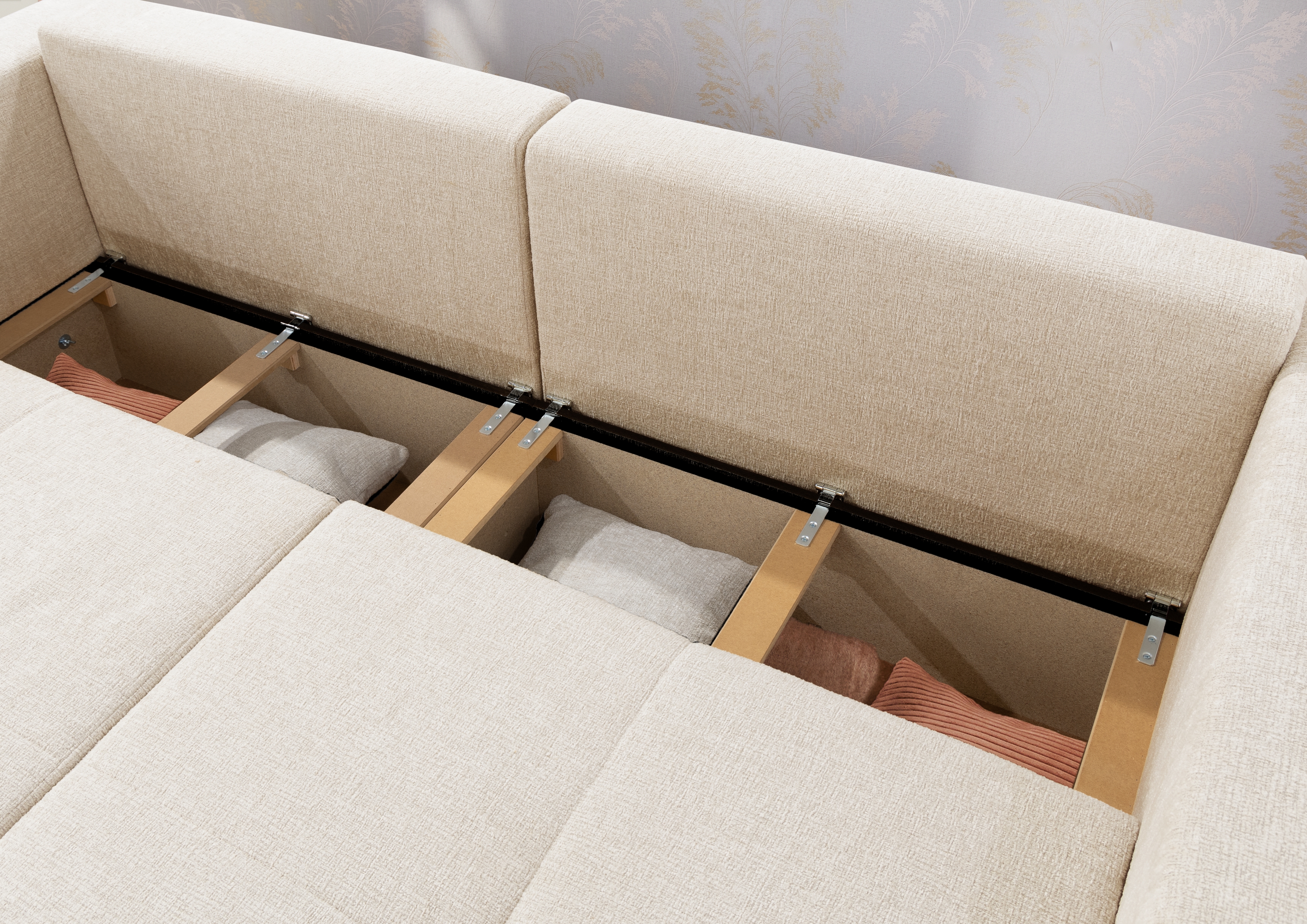 | Equipement canapés: | Dos habillé, Méridienne à droite ou à gauche, incl. coffre de lit, incl. coussins | ||