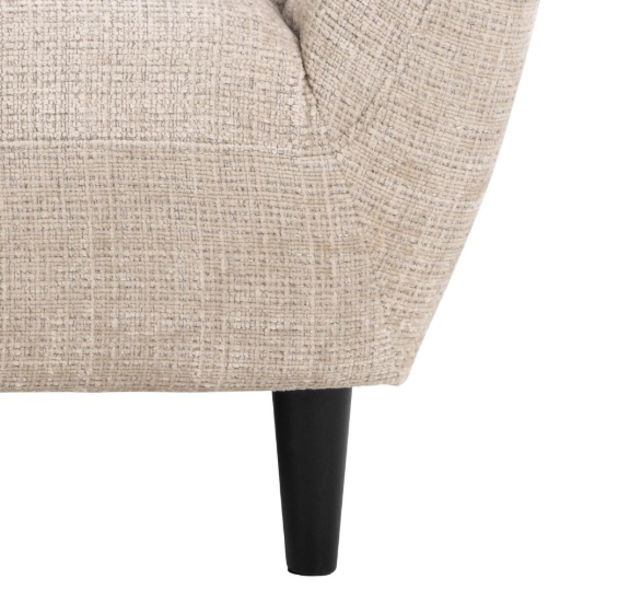 La surface finement structuree du revetement est a la fois elegante et agreablement douce au toucher, ce qui rend le canape convaincant non seulement sur le plan visuel, mais aussi sur le plan tactile. Le design est soutenu par un cadre stable en bois d'hevea laque noir NC, qui contraste elegamment avec le tissu clair et assure une stabilite durable et sure.