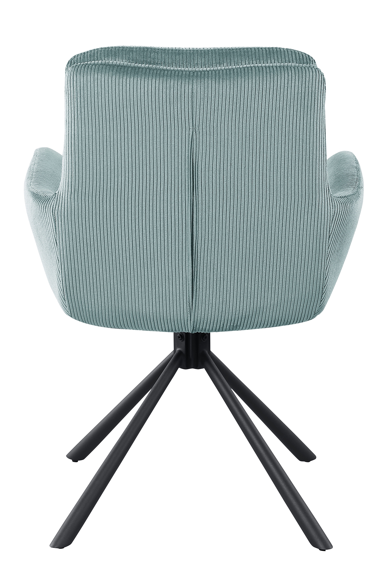 Cette chaise à accoudoirs tendance séduit par son revêtement en tissu aspect velours côtelé de grande qualité. Le piètement quadripode en métal finition époxy avec fonction pivotante à 360° offre une excellente stabilité et un fabuleux contraste avec le revêtement de la chaise. Grâce au rembourrage confortable, vous bénéficierez d'un excellent confort d'assise. Les surpiqûres horizontales du revêtement sont un point fort visuel. Avec son design stylé, cette chaise peut être placée dans un coin repas, une salle d'attente ou même une salle de réunion. Ce meuble attirera également tous les regards en guise de siège solo. Vos invités et vous-même allez adorer votre nouvelle chaise.