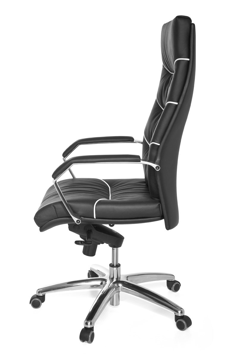 ✔ DESIGN Fauteuil de direction confortable ton noir avec assise généreusement rembourrée (cuir vachette véritable) et dossier haut