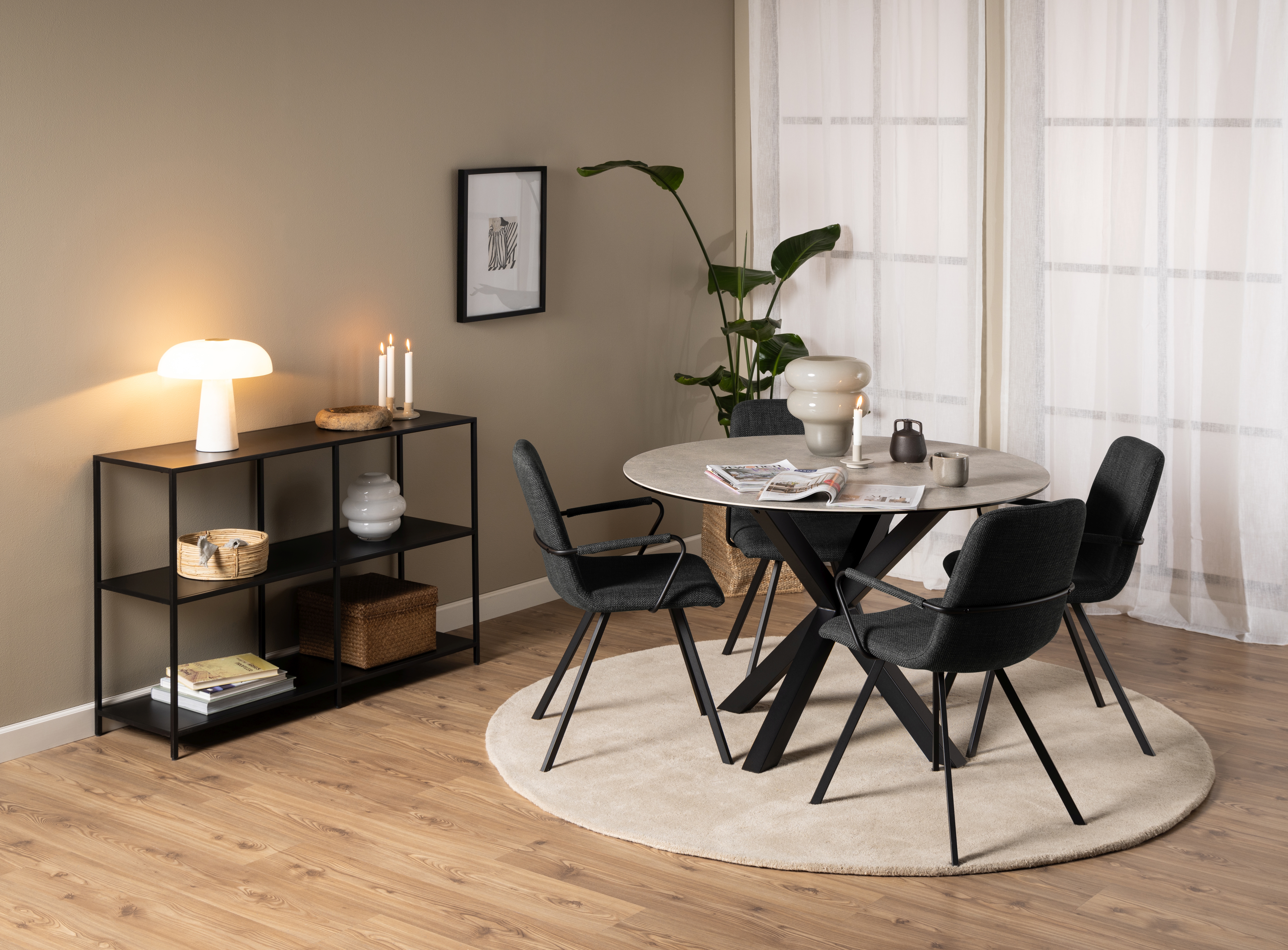Piètement : acier finition époxy aspect rugueux ton noir mat