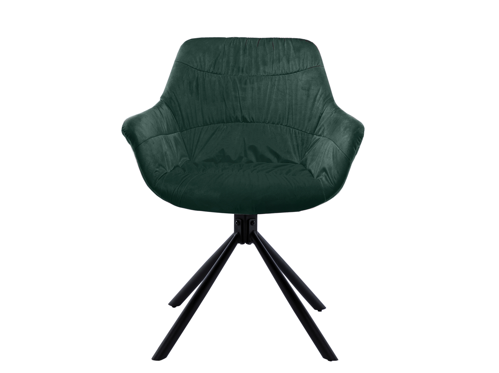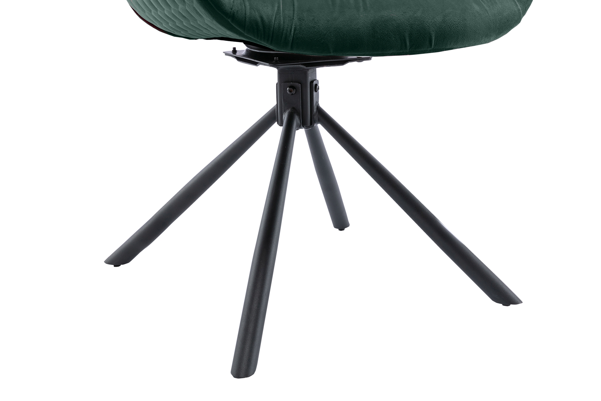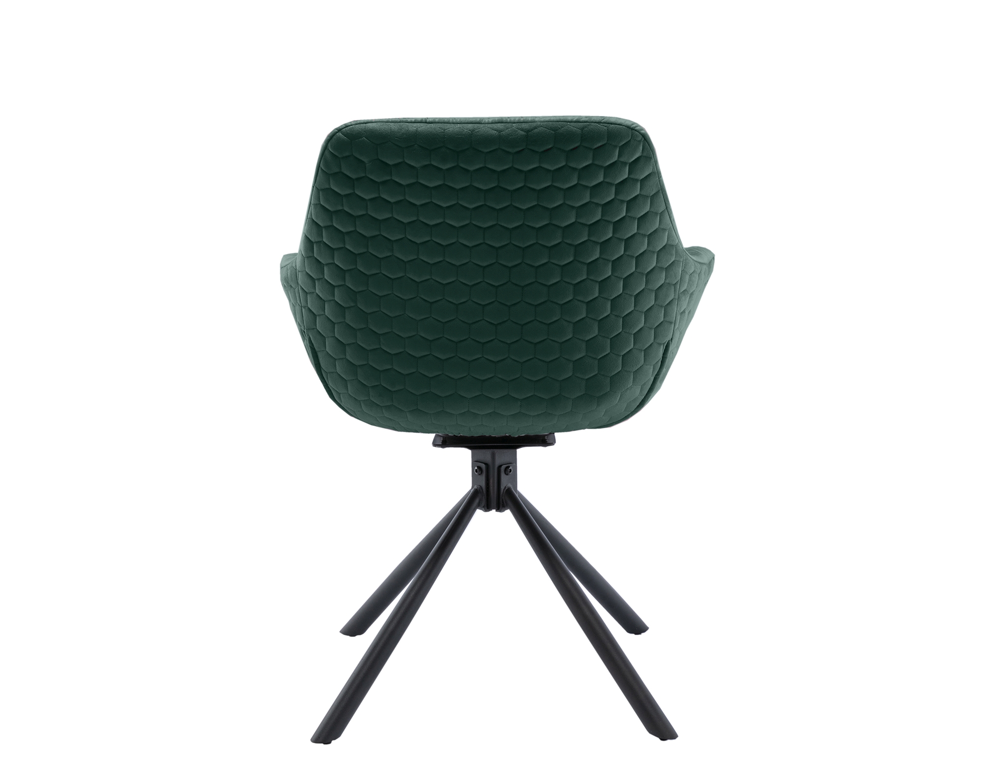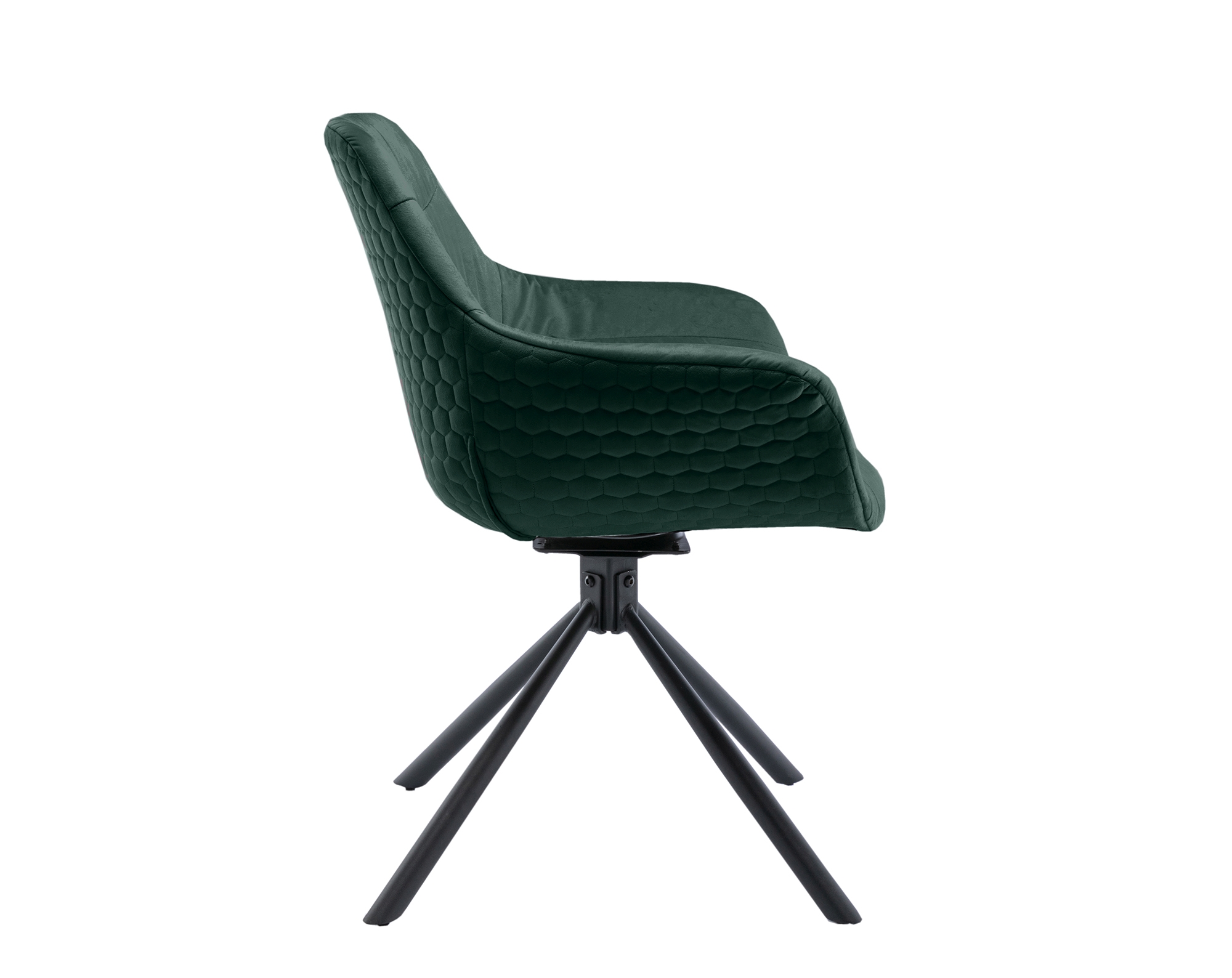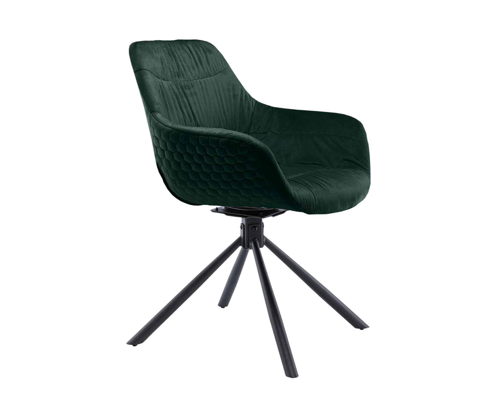 La chaise à accoudoirs tendance séduit par son revêtement en tissu aspect velours et son piètement avec fonction pivotante à 360° en métal finition époxy ton noir. Le piètement garantit une excellente stabilité et s’harmonise parfaitement avec le revêtement de la chaise. Grâce à la coque confortable et aux accoudoirs, vous bénéficierez d'un confort d'assise exceptionnel. Les surpiqûres horizontales au niveau de l'assise et du dossier ainsi que l'aspect nid d’abeilles dans le dos attireront tous les regards dans la pièce. Grâce à sa forme originale, cette chaise rembourrée peut aussi être utilisée comme chaise de réunion. Peu importe où il sera placé, vous allez adorer ce siège confortable… et vos invités aussi vont le plébisciter !