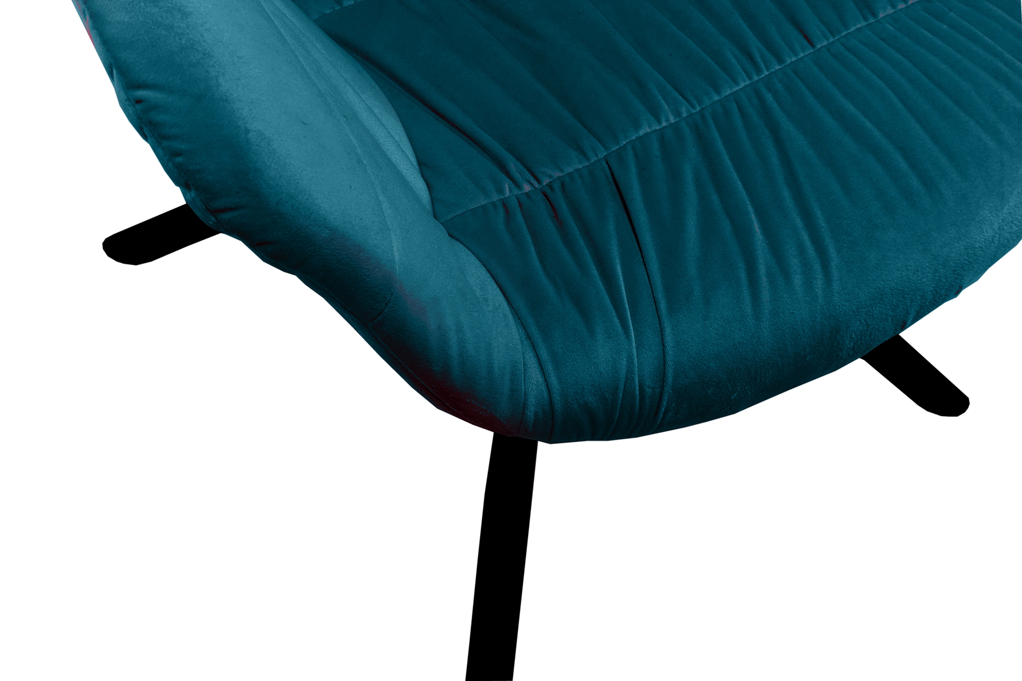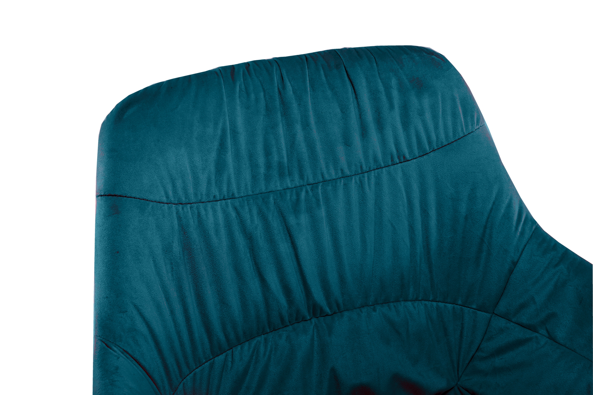 La chaise à accoudoirs tendance séduit par son revêtement en tissu aspect velours et son piètement avec fonction pivotante à 360° en métal finition époxy ton noir. Le piètement garantit une excellente stabilité et s’harmonise parfaitement avec le revêtement de la chaise. Grâce à la coque confortable et aux accoudoirs, vous bénéficierez d'un confort d'assise exceptionnel. Les surpiqûres horizontales au niveau de l'assise et du dossier ainsi que l'aspect nid d’abeilles dans le dos attireront tous les regards dans la pièce. Grâce à sa forme originale, cette chaise rembourrée peut aussi être utilisée comme chaise de réunion. Peu importe où il sera placé, vous allez adorer ce siège confortable… et vos invités aussi vont le plébisciter !
