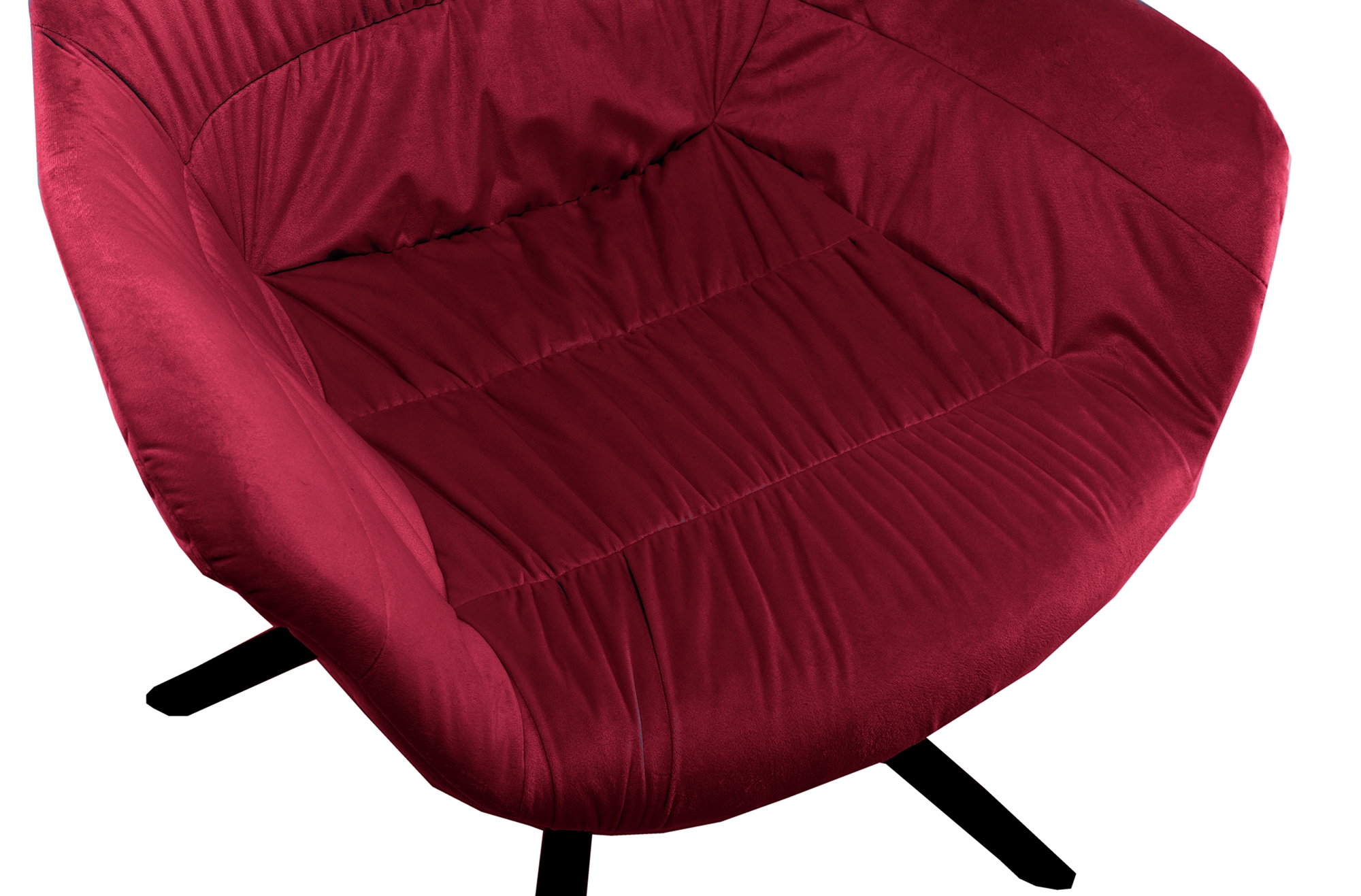 La chaise à accoudoirs tendance séduit par son revêtement en tissu aspect velours et son piètement avec fonction pivotante à 360° en métal finition époxy ton noir. Le piètement garantit une excellente stabilité et s’harmonise parfaitement avec le revêtement de la chaise. Grâce à la coque confortable et aux accoudoirs, vous bénéficierez d'un confort d'assise exceptionnel. Les surpiqûres horizontales au niveau de l'assise et du dossier ainsi que l'aspect nid d’abeilles dans le dos attireront tous les regards dans la pièce. Grâce à sa forme originale, cette chaise rembourrée peut aussi être utilisée comme chaise de réunion. Peu importe où il sera placé, vous allez adorer ce siège confortable… et vos invités aussi vont le plébisciter !