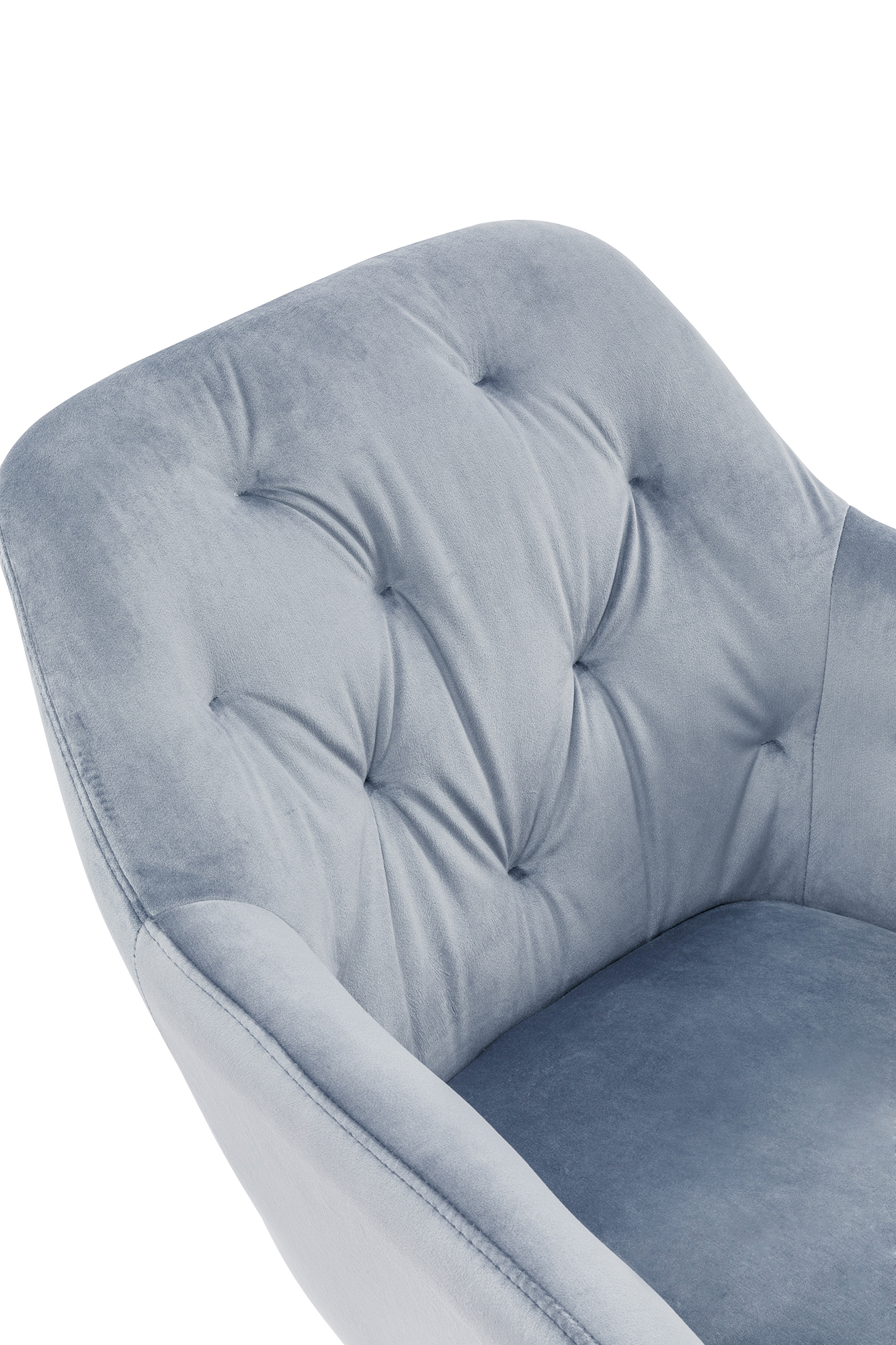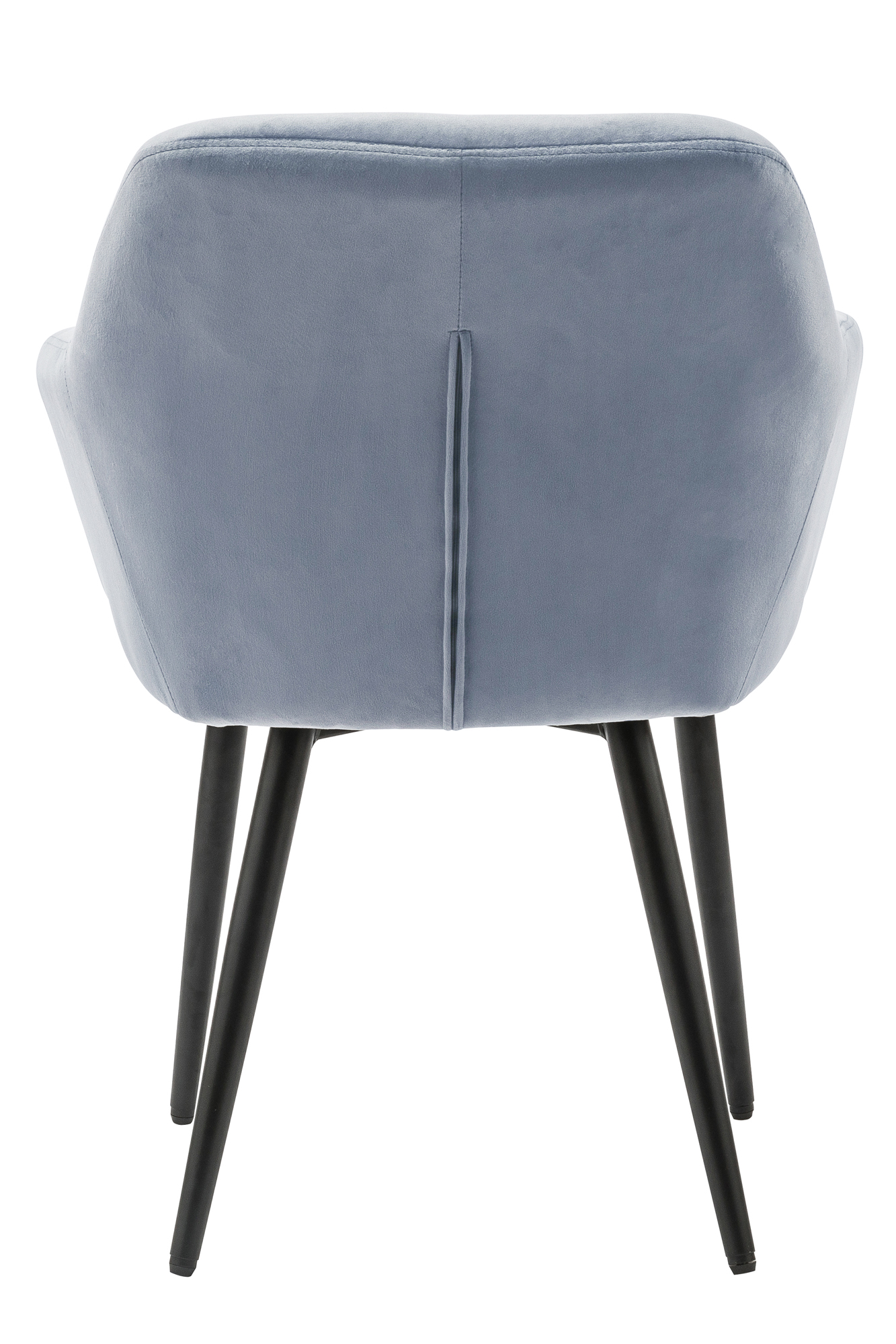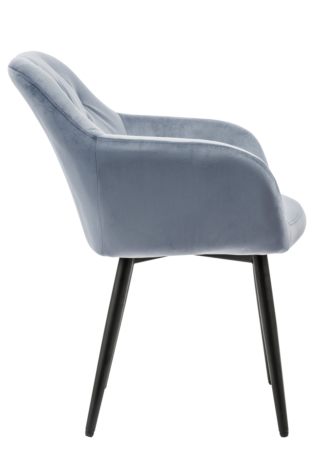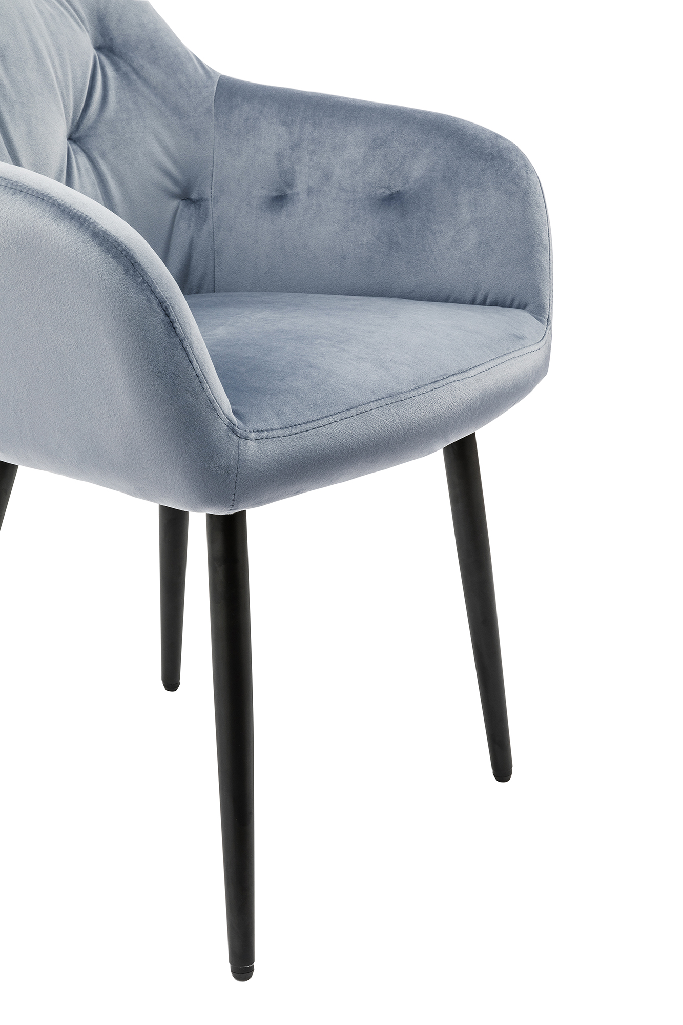 La chaise rembourrée moderne séduit par son revêtement en tissu aspect velours et par son rembourrage au niveau de l'assise et du dossier. Les 4 pieds en métal finition époxy ton noir garantissent une excellente stabilité tout en offrant un superbe contraste avec le revêtement de la chaise. Grâce au rembourrage confortable, au dossier et aux accoudoirs, vous bénéficierez d'un excellent confort d'assise. Le point fort visuel est le capitonnage qui s'étend sur la partie intérieure du dossier et des accoudoirs et qui contribue à une image d'ensemble harmonieuse.
