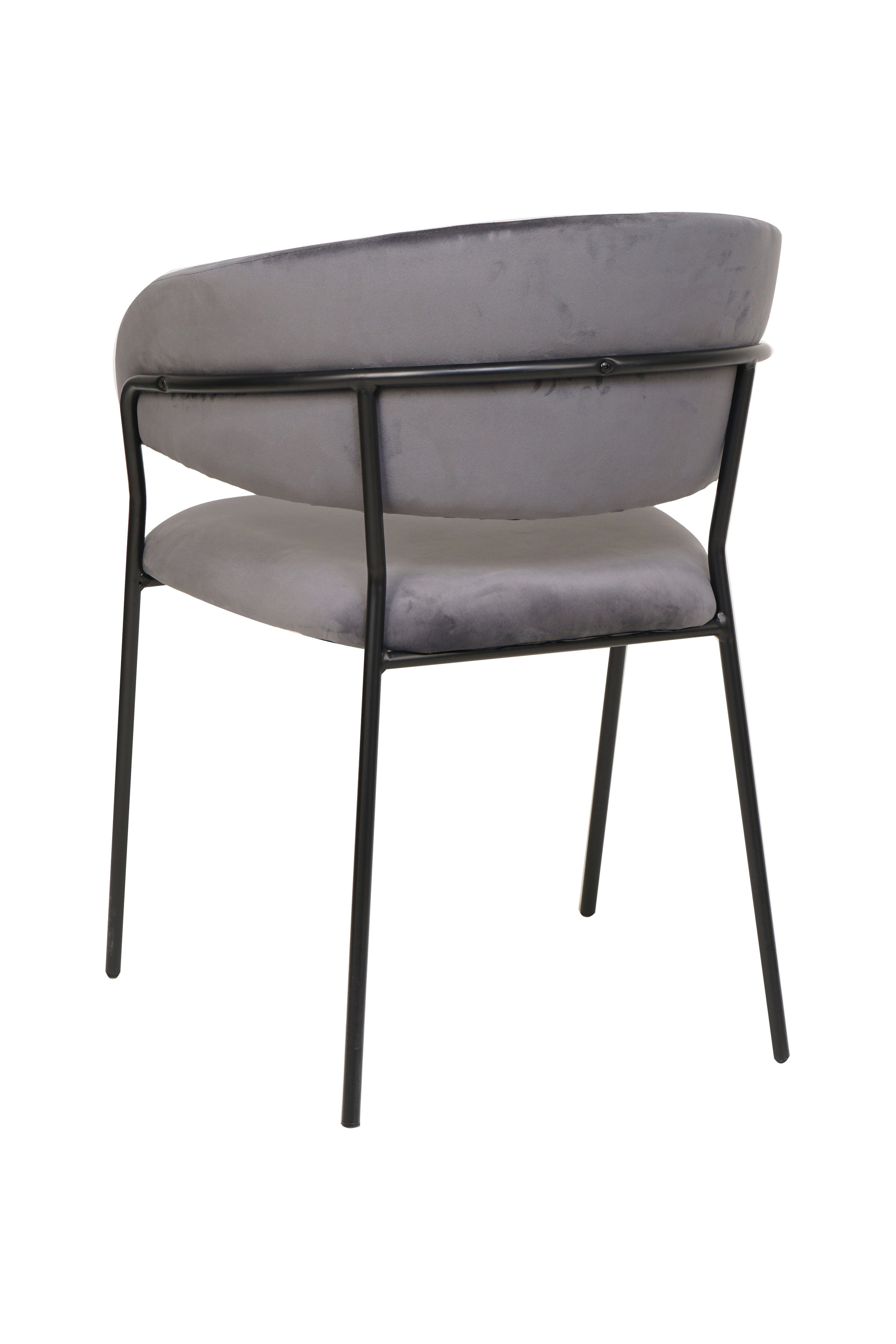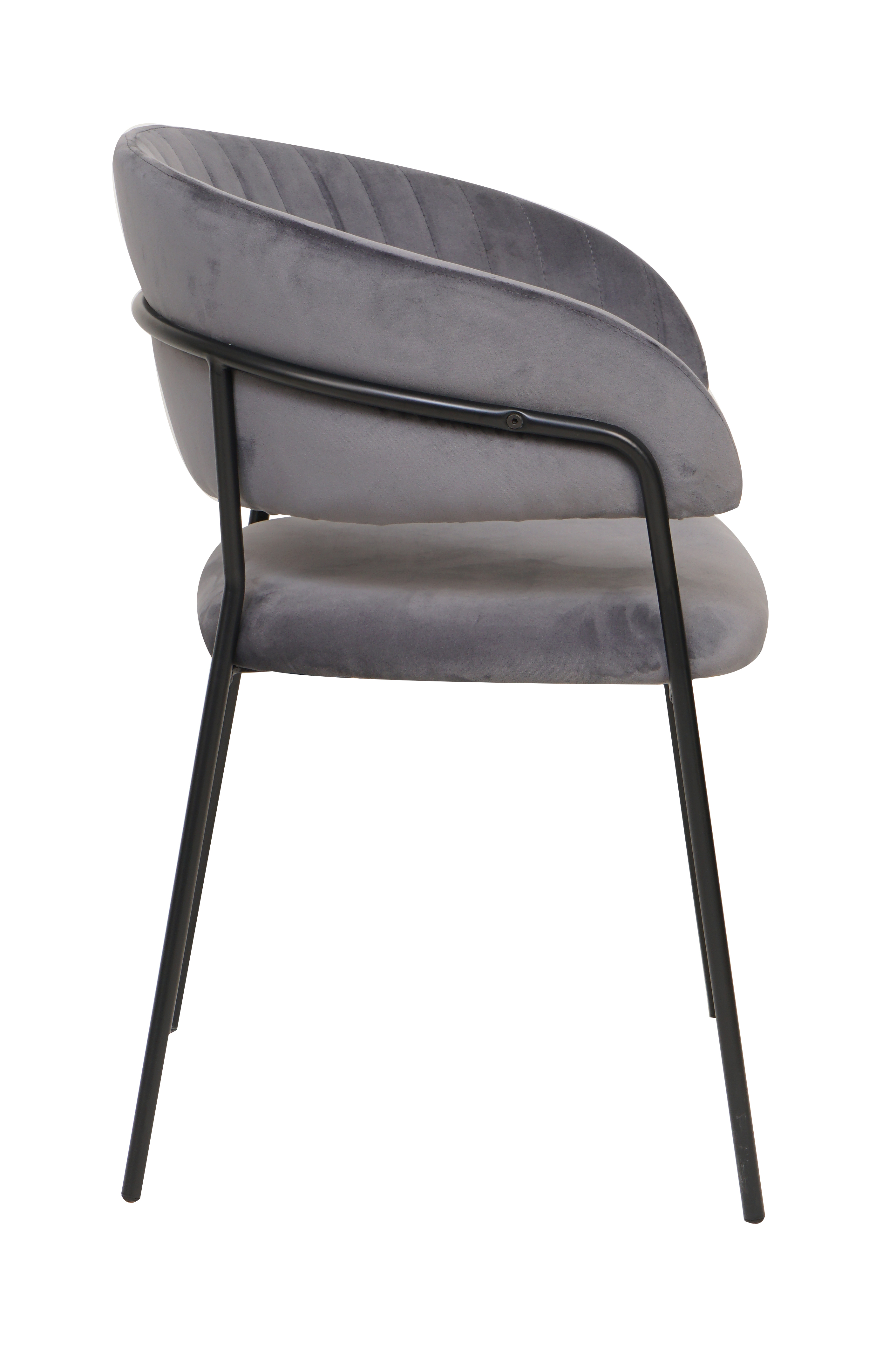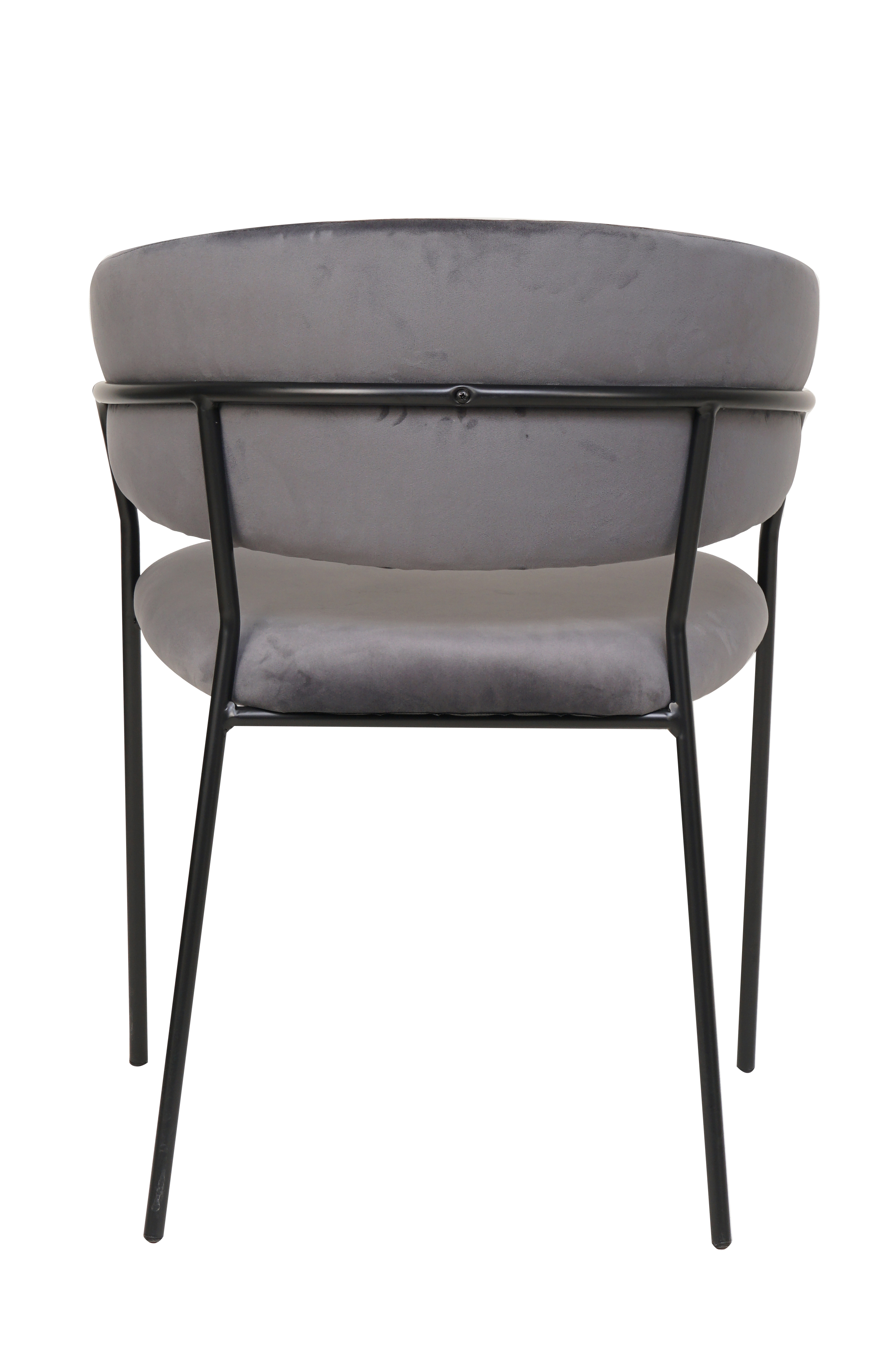 Cette chaise en velours est un véritable bijou en matière de design ! L'élégante chaise offre un excellent confort d'assise tout en attirant les regards. Le tissu velours gris offre un superbe contraste avec les pieds en métal finition époxy ton noir. La partie dossier et accoudoirs en arrondi s'adapte parfaitement à votre morphologie. Cette chaise en velours vous invite à la détente. Dans la salle à manger ou le salon, cette chaise est la solution idéale. Vos invités vous envieront cette jolie chaise !