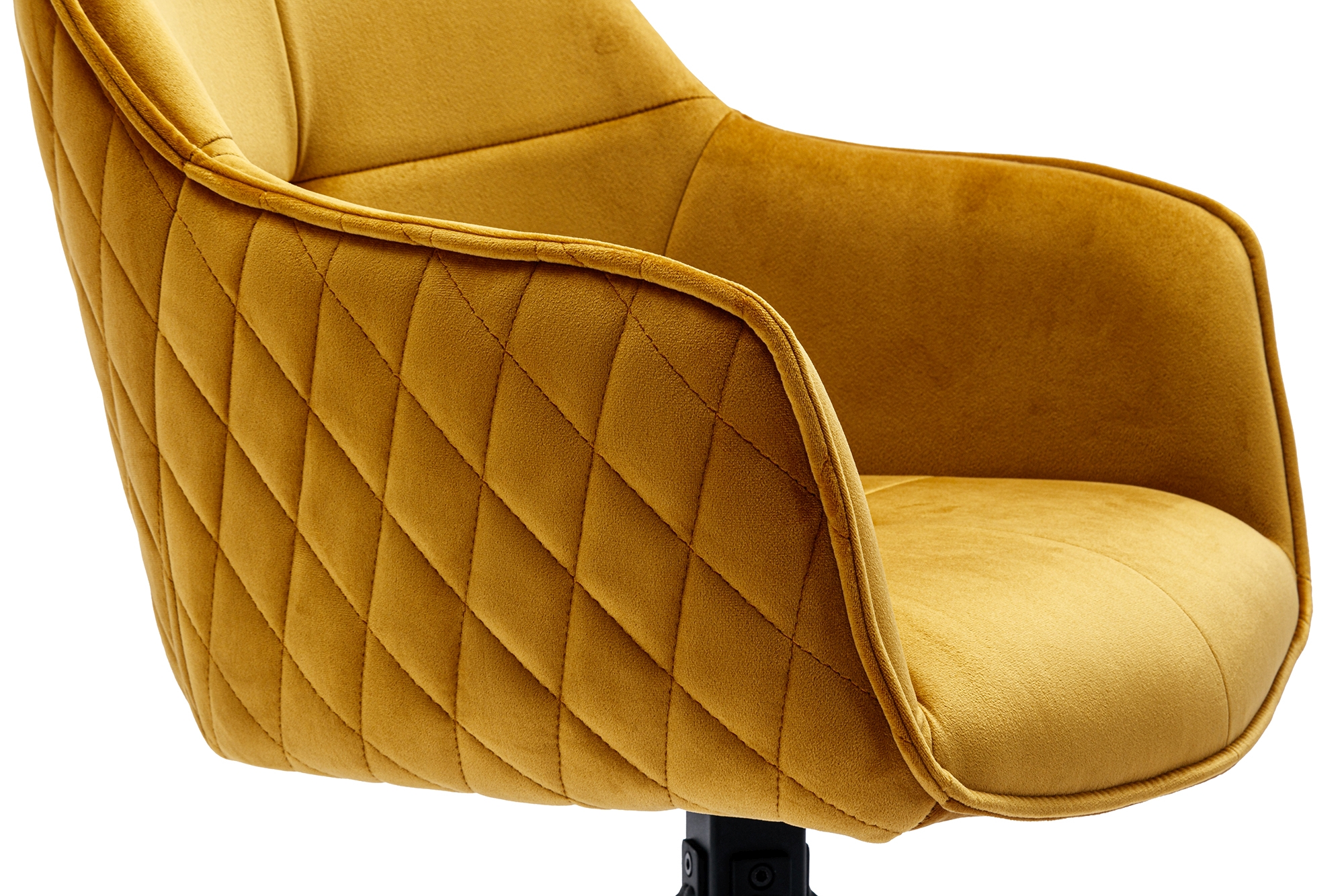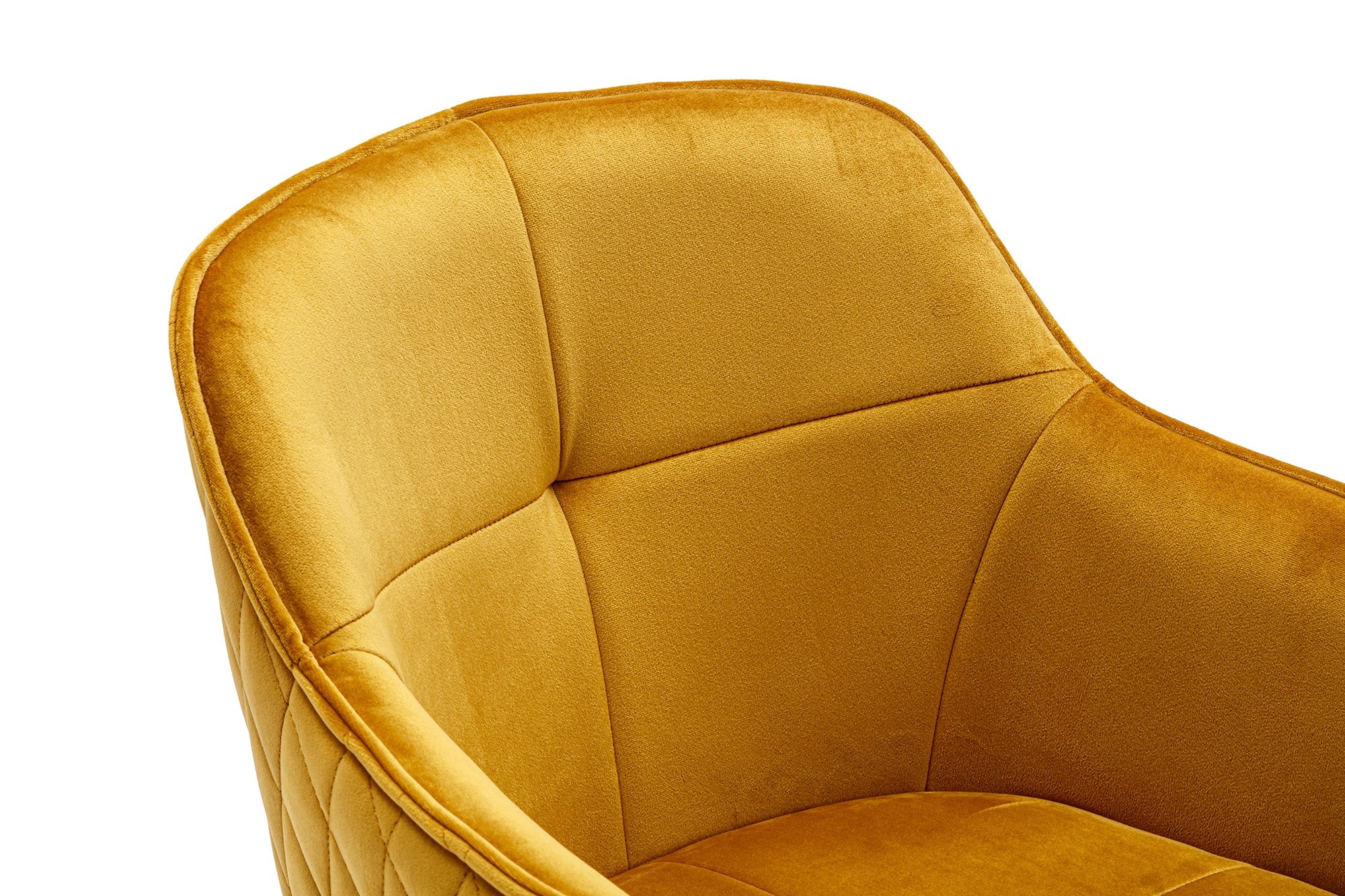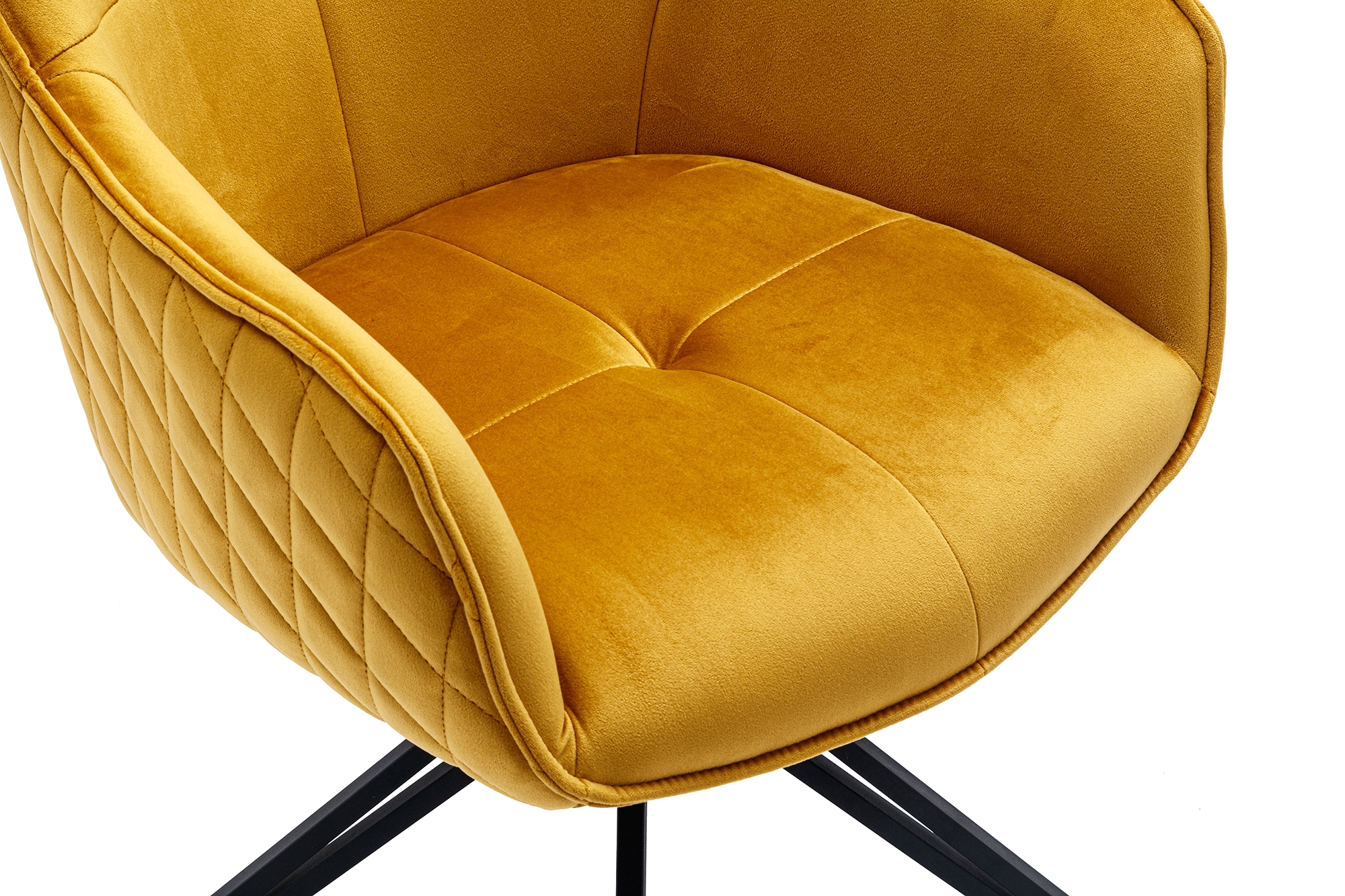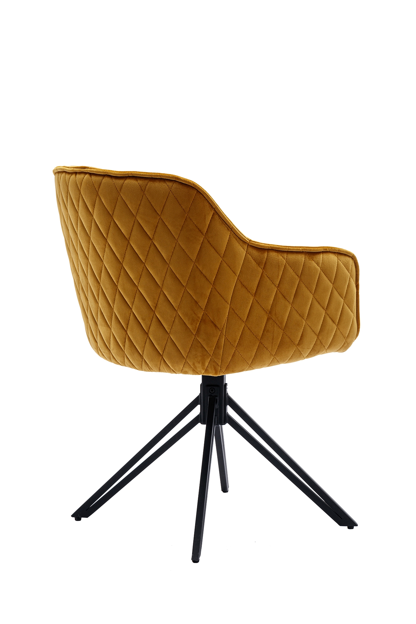 La chaise à accoudoirs stylée avec fonction pivotante à 360° enrichira votre intérieur grâce à son confort d’assise particulièrement souple. La coque pivote à 360°. Le look vintage de cette chaise confortable attirera tous les regards dans la pièce. Le piètement design original en métal noir et les surpiqûres en forme de losanges dans le dos sont quelques-uns des détails de ce fauteuil qui attestent d’une finition soignée. Les pieds en métal noir offrent un contraste intéressant avec le revêtement en velours de l’assise tout en garantissant une excellente stabilité. Une chaise originale en tout point pour votre intérieur !