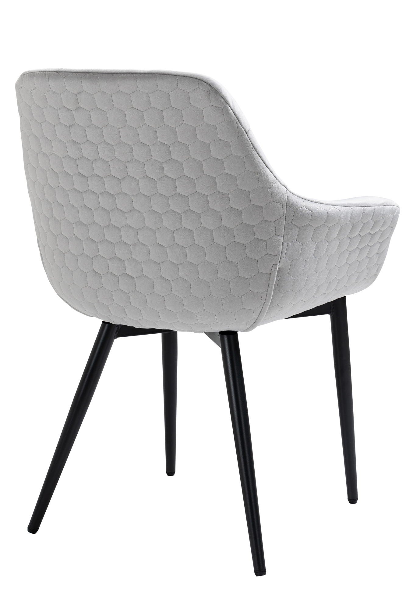 La chaise à accoudoirs tendance séduit par son revêtement en tissu aspect velours et son piètement à 4 pieds en métal finition époxy ton noir. Les pieds en métal garantissent non seulement une stabilité sans vacillement, mais s’harmonisent aussi parfaitement avec le revêtement. Grâce à la coque confortable, vous bénéficierez d'un confort d'assise exceptionnel. Les surpiqûres verticales au niveau de l'assise et de l'intérieur du dossier ainsi que l'aspect nid d'abeilles à l'extérieur attireront tous les regards dans la pièce. Grâce à sa forme originale, cette chaise rembourrée peut aussi être utilisée comme chaise de réunion. Peu importe où il sera placé, vous et vos invités allez adorer ce siège confortable.